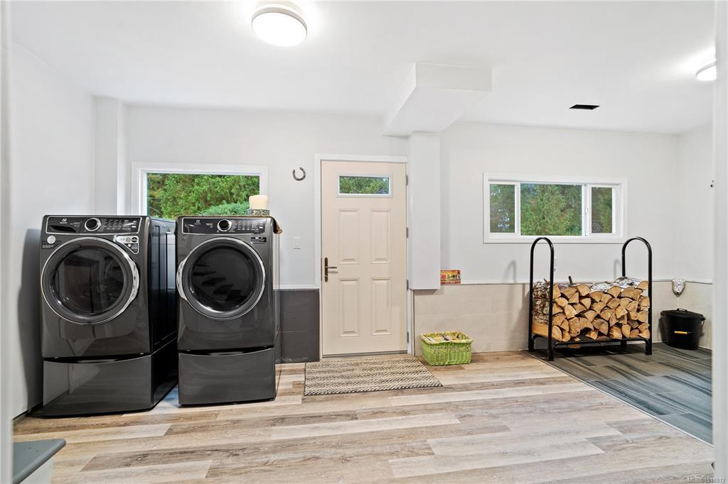 Discover serene living in this prime spot in lower Lantzville. Nestled just off the main highway, Just 5 minutes to the ocean and minutes away from Nanaimo for most major amenities. You are welcomed by a spacious, versatile, gas efficient home which comes equipped with triple locking doors, newer double-pane windows, on a large lot just under an acre. With 4 bedrooms and 1 large bathroom, this renovated split level home offers unparalleled comfort in the large living area with the gas fireplace, and an updated wood-burning fireplace on the lower level. The home also offers a large covered patio that you can enjoy the sounds of the birds in the morning sun, or entertain dinner guests. The absolute stunning yard has 2 apple trees, a plum tree, and a walnut tree. There is ample space in the backyard, which currently has a large 2 room shed for tools and firewood. Best of all, this excellent property is zoned for an in-law suite, or carriage home