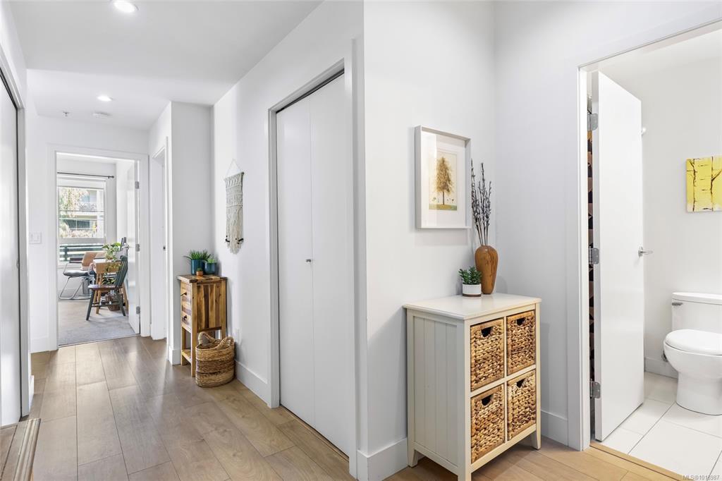 Welcome to your new home at 201-317 Burnside! This bright 2 bed, 2 bath condo offers a spacious layout with large windows and natural light throughout. Enjoy a modern newer build with deluxe bathrooms featuring in-floor heating, plus the comfort of a private deck for outdoor living. Secure underground parking and dedicated storage add everyday convenience. With its generous size and central location near shopping, dining, and transit, this home is perfect for first-time buyers, downsizers, or investors.