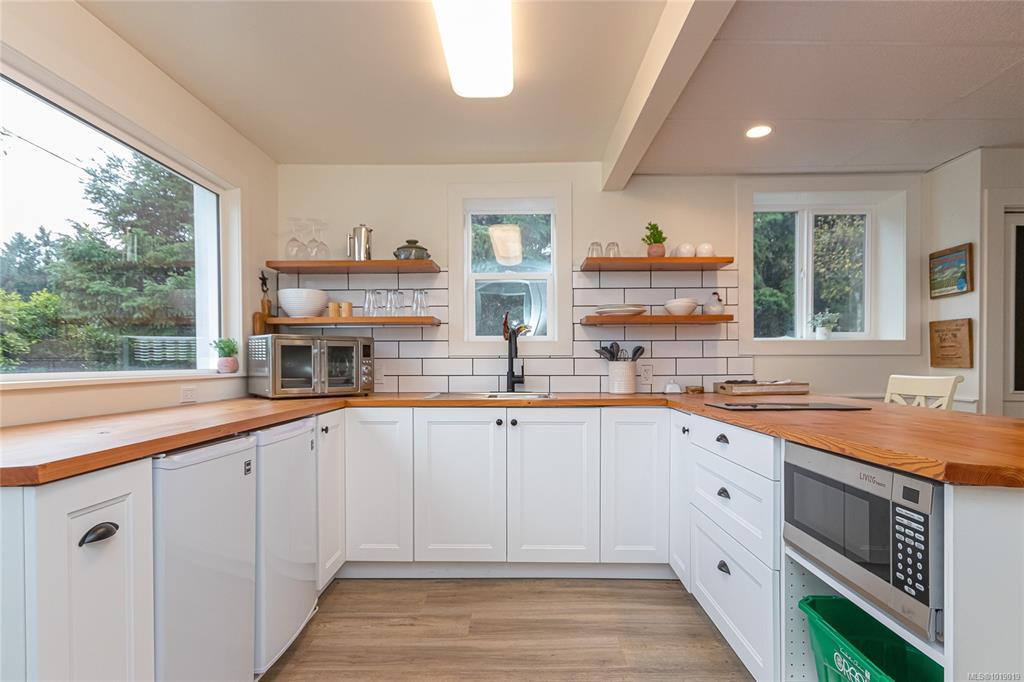 Nestled in the unbeatable location of Mill Bay on a private .62 acre parcel surrounded by mature hedging, this impressively renovated, 3,100+ Sq.Ft. main level entry home w/walkout bsmt features beautiful ocean views & aims to please. From the custom millwork, hardwood flooring, granite & butcher block counters & attention to detail throughout to the spa inspired bathroom w/infrared sauna & fireplace, the 3 bdrm, 3 bath home has something for everyone including separate in-law suite for family, guests or B&B potential. The property is a serene oasis offering 2 ponds, independent studio, inviting gazebo, greenhouse, detached garage/carport & lush gardens. Victoria is an easy commute, Mill Bay Center amenities - shops, restaurants, bank, medical offices & schools such as prestigious Brentwood are minutes away & it’s steps to marina, beach & walking trails. This is a property that pulls at your heart strings & must be seen to be appreciated. It’s more than a home it’s a lifestyle.