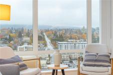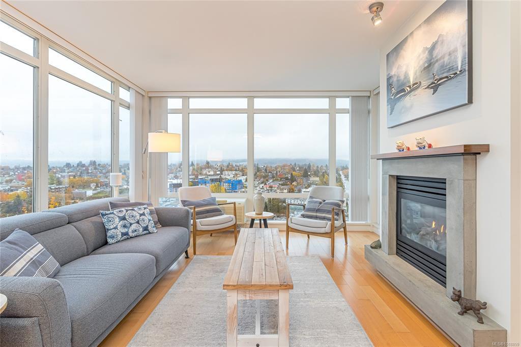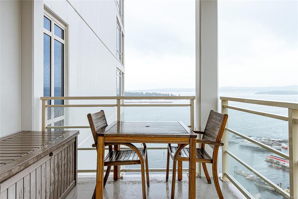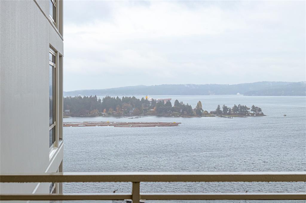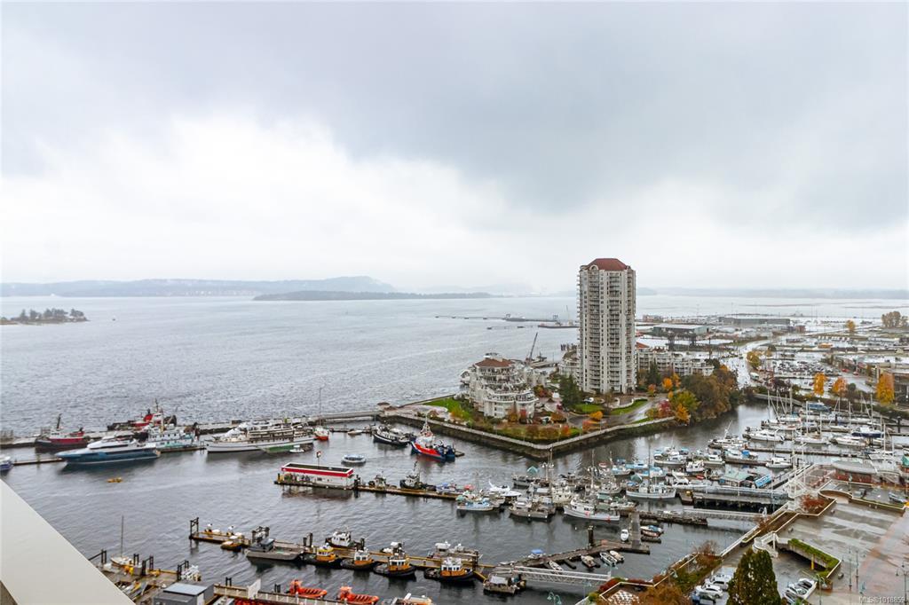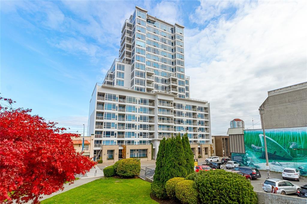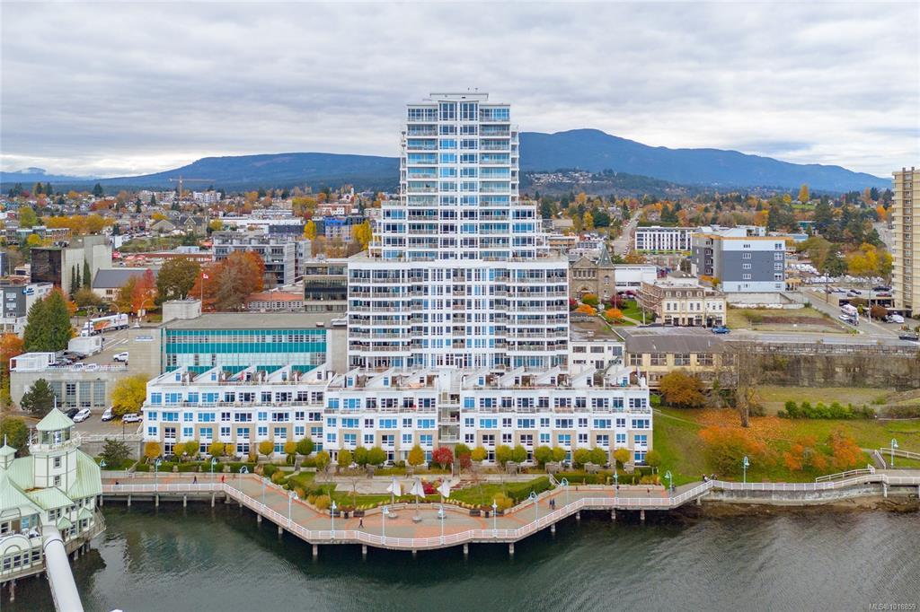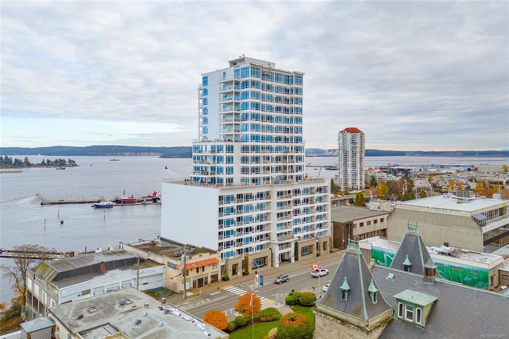 Open House Sunday Nov 9, 11:00-1:00. Soaring high above the city on the 15th floor, this spacious 2-bedroom, 2-bath corner unit showcases panoramic views of Nanaimo's harbour, mountains, and cityscape. Located in Pacifica, a quality-built steel and concrete building, this home offers an unmatched luxury lifestyle. Inside, the open-concept layout creates an effortless flow between the kitchen, dining, and living spaces. The kitchen features granite countertops, stainless steel appliances, and plenty of room to entertain. Oversized windows and hardwood floors bring warmth and light throughout, while the large covered deck invites you to unwind and take in the ever-changing coastal scenery. Enjoy the ease of in-suite laundry, secure underground parking, and separate storage. Pets are welcome! Step outside and explore the best of Nanaimo: stroll the seawall, spend a sunny afternoon at Maffeo Sutton Park, and enjoy the vibrant cafes, restaurants, and shops just steps from your door.