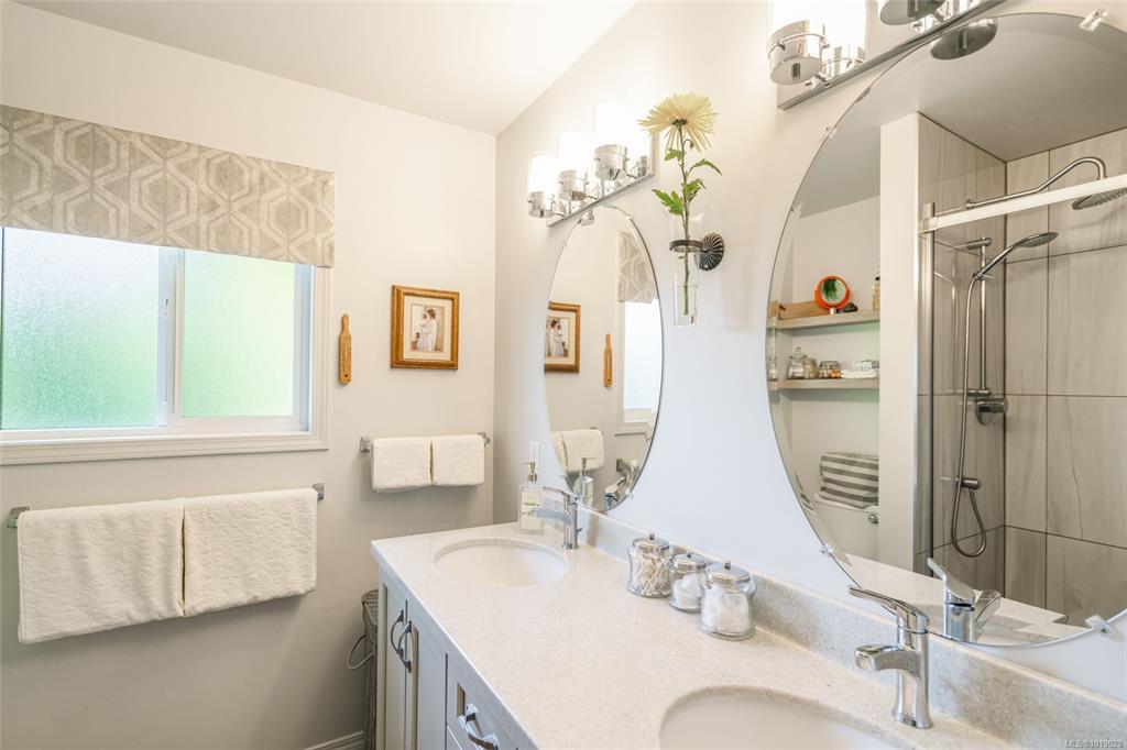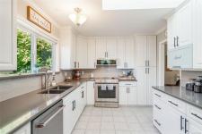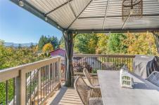 Welcome to this beautifully updated home with a legal suite and over 2,700 sq. ft. of living space. Recent upgrades include new windows, roof, KitchenAid appliances, and hot water tanks in both the main home and suite. The kitchen features quartz counters, heated tile floors, and plenty of storage, while the main bath offers heated floors, double sinks, and a walk-in shower. Enjoy the cozy gas fireplace, efficient furnace, and garage for extra storage or parking. The layout offers flexibility with two bedrooms on the main level and three more downstairs, including one with a Murphy bed and new mattress. The 1-bedroom legal suite has its own laundry and dishwasher and can be offered furnished. Outside, relax in the private fenced yard with mountain views, gas BBQ hookup, gazebo, irrigation, sheds, fruit trees, and fire pit. Ideally located near schools, shopping, and outdoor recreation. All data approx.
