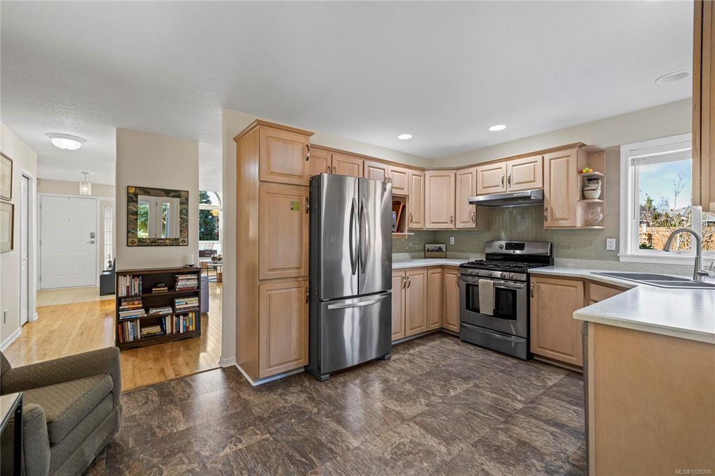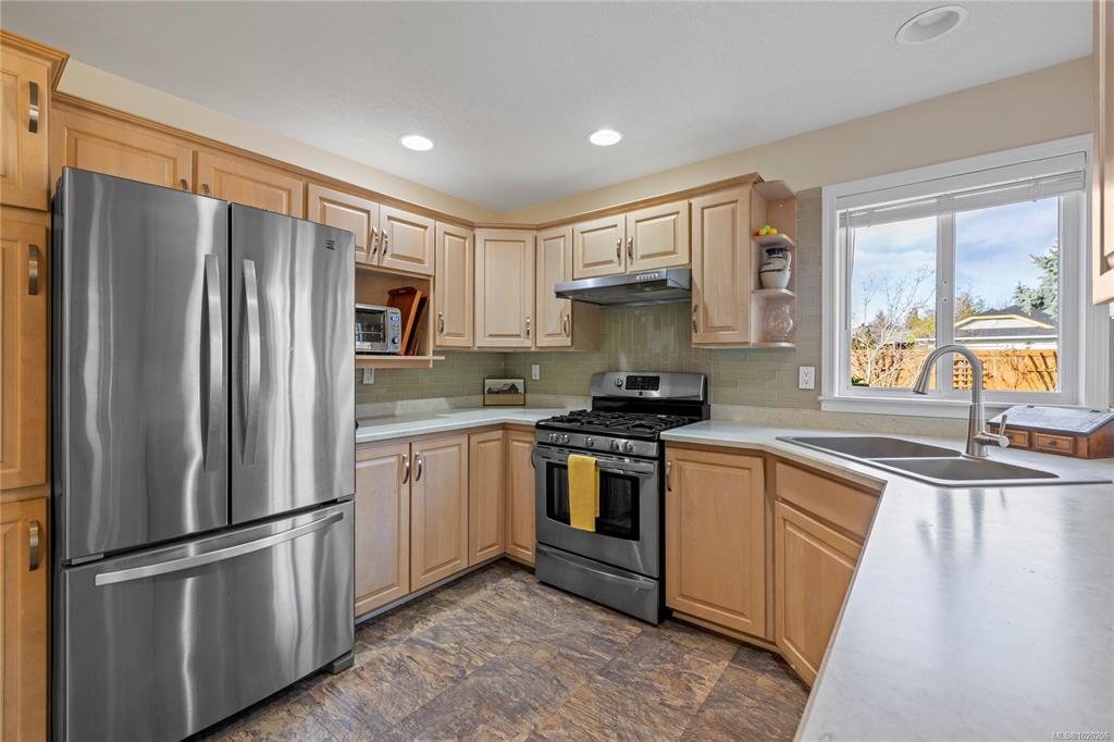 Well-maintained 3-bedroom, 2-bath rancher in quiet Maple Glen subdivision. Bright and spacious with vaulted ceiling and gas fireplace in living room. Kitchen opens to covered back patio and fully fenced, landscaped yard with raised garden beds, irrigation system, and garden shed. South-facing front yard offers great light. Primary bedroom features walk-in closet and 3-piece ensuite. Crawlspace has hydraulic hinges for easy access. Close to shopping and amenities. Quick possession possible.