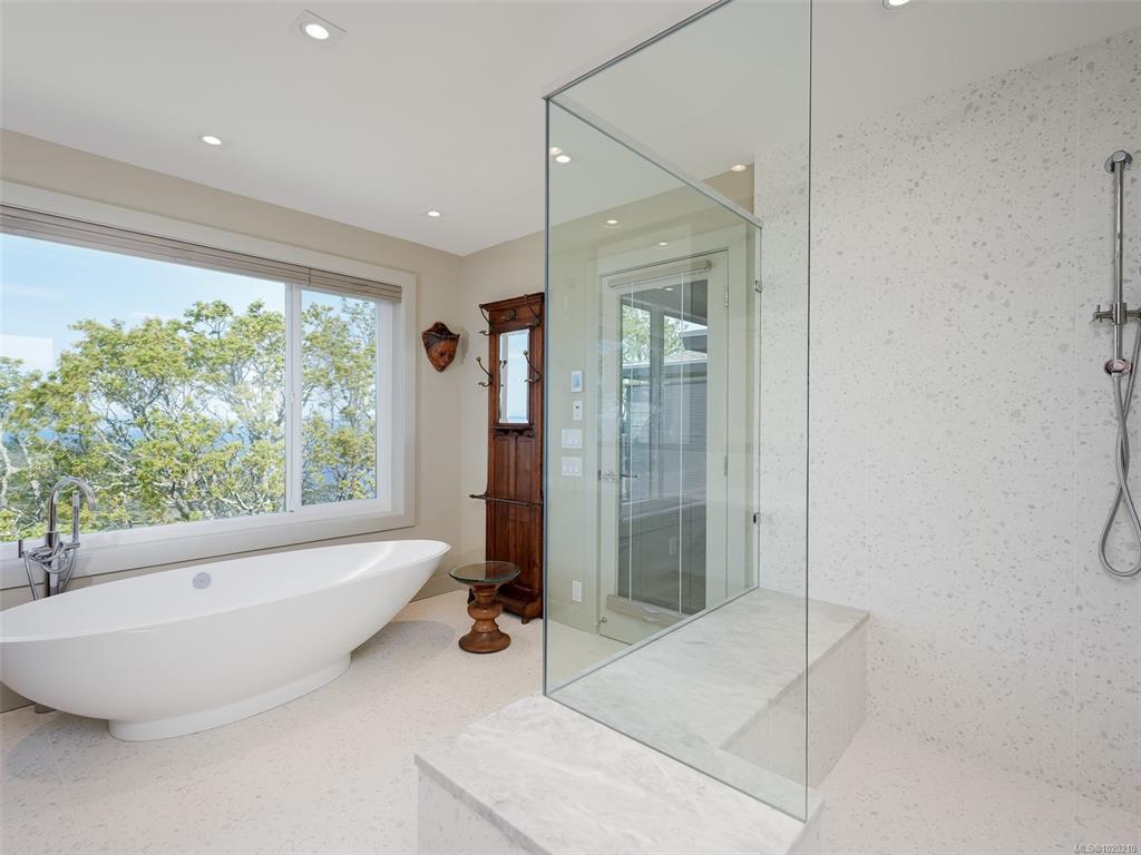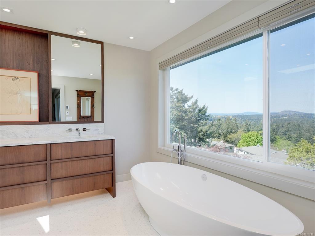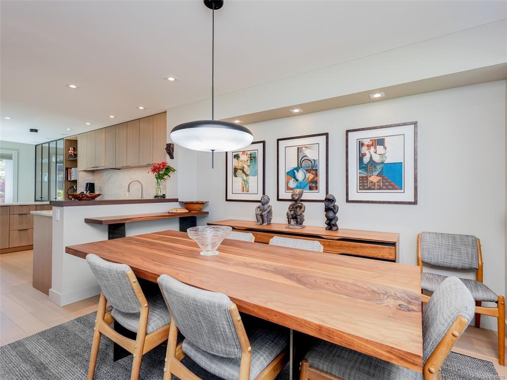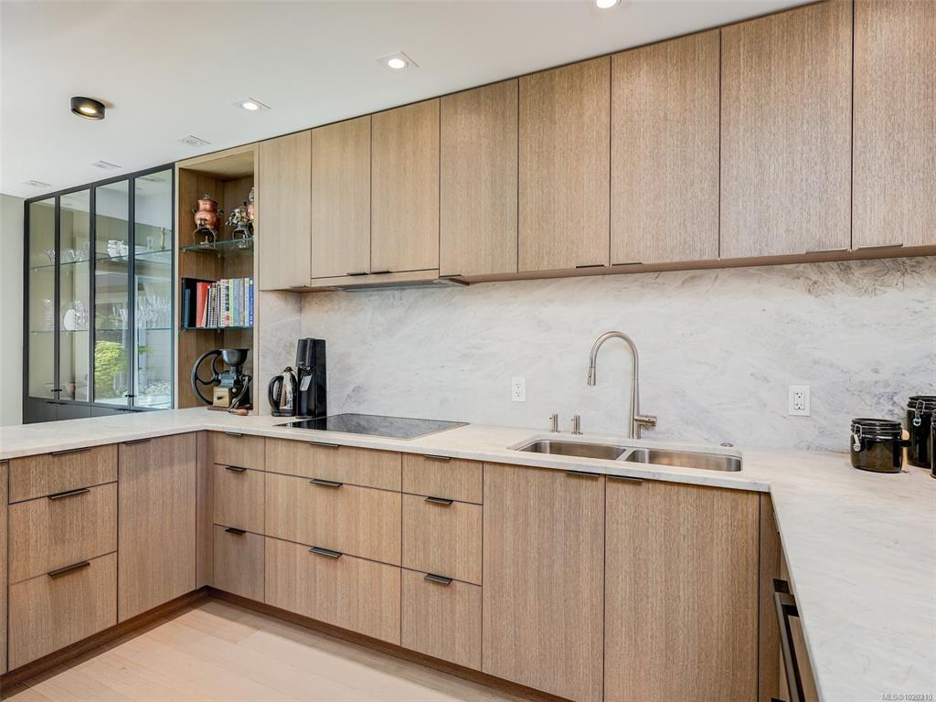 WINNER OF A 2025 SILVER CARE AWARD - JUST ONE LOOK & YOU KNOW THIS HOME IS TRULY SPECIAL! A stunning transformation that was completely redesigned & reimagined! Taken back to the studs & elevated to the highest standards w/ careful attention & commitment to craftsmanship. Just a few of the many features include European white oak flooring, pot lights throughout, custom white oak solid wood cabinets, natural Italian stone countertops, fireplace w/ white oak mantle & stone facing, custom built-in shelving & built ins with closets. 3 bedrooms plus den-3 bath, approx. 2200 sq. ft., with ocean & Mt. Doug. views. Located in prestigious Wedgewood Estates, a desirable gated community set on 16 private acres that includes a clubhouse, indoor pool, hot tub, sauna, tennis court & separate RV parking. A stroll to nearby Cadboro Bay Village, Gyro Beach & Telegraph Cove. This is a once in a lifetime opportunity to own a special home w/ exceptional livability & design.