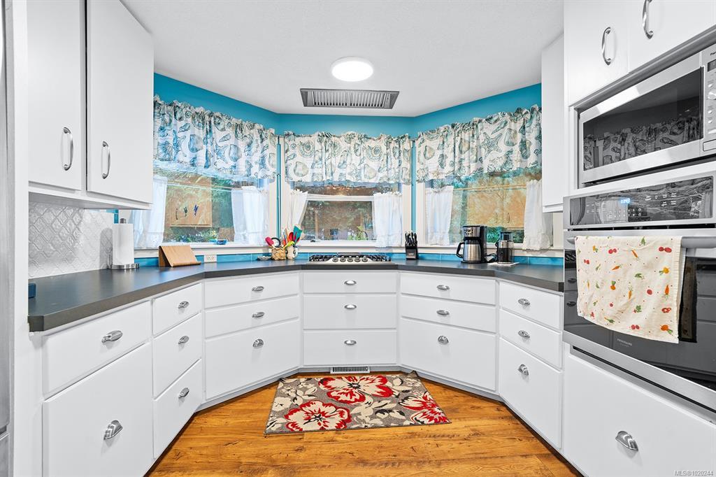 Qualicum Woods; step into a one-of-a-kind home offering more than 5,000 sq.ft. of beautifully finished living space across 3 thoughtfully renovated levels. The main floor impresses with a modern kitchen featuring a gas cooktop, sleek quartz countertops and updated appliances. Spacious formal sitting and dining rooms offer more than enough room to entertain. 4 full bathrooms, all tastefully updated, danish windows on the second floor that combine airflow and starlit nights not to be outdone by the bonus lookout! The lower-level walkout adds incredible flexibiity with 3 studio spaces; two fully soundproofed-perfect for creators, professionals, or hobbyists. Enjoy movie nights in your own home theatre, plus the convenience of an attached garage. Designed to inspire and elevate your passions, this exceptional property blends comfort, creativity, and functionality in every corner.