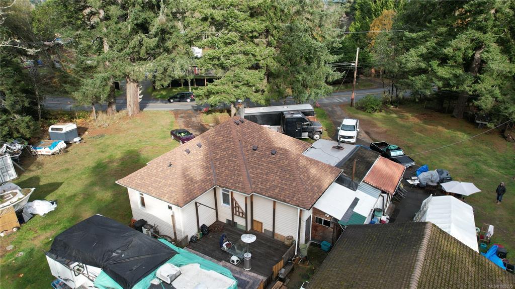 Here is your opportunity to revitalize this home and property. Rare, flat 2.64 acre parcel, right in the core of Sooke, just a short stroll to Whiffin Spit, beaches, parks, elementary school, and 2 km from shops and services. The original home has a brand new roof, and loads of character from a bygone era. A detached double garage and 24x36 workshop, both with power, suit the handyperson or home-based business. Two road frontages: approximately 475' along West Coast Road/Hwy 14, and access from Marathon Lane. Approximately 1.5 acres of forest of various species. Loads of parking, RV hookup, a party deck with pool, and plenty of room to enjoy a rural lifestyle, in-town! ALR property - set up your hobby farm or agri-tourism business. Two accesses from West Coast Road make this an ideal, easy-access property for any kind of venture.