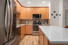 Exceptional opportunity to live at Pacific Grande Townhomes—a private, beautifully designed community perfectly located near all amenities at Wembley Mall. This spacious 2-bedroom + den, 3-bath home offers an open-concept main level with luxurious laminate and tile flooring, high ceilings, and custom lighting throughout. The gourmet kitchen showcases granite countertops, stainless steel appliances, and a large island ideal for entertaining. A dual-sided fireplace connects the dining and living areas, leading to a private patio for relaxing or summer gatherings. Freshly painted and move-in ready, this home offers two primary bedroom options—main level living with a spa-inspired ensuite and walk-through closet, or an upper-level retreat with full ensuite, sitting area, and private balcony for sunsets and mountain views. Experience luxury living at an affordable price in one of Parksville’s most convenient locations.