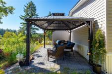 Welcome to this beautifully maintained 2003 doublewide home, where comfort and convenience meet peaceful country living. Built with solid 2x6 construction and CSA-certified electrical, it features a new heat pump and furnace with A/C to keep you cozy year-round. The bright, open layout creates a welcoming flow between the spacious kitchen, dining area with custom cabinetry, and airy living room—perfect for family gatherings. The private primary suite includes a walk-in closet and relaxing 4-piece ensuite. Step outside to enjoy lovely gardens, a private patio, and three handy sheds for all your storage needs. Nestled in a quiet cul-de-sac within a well-kept park, this home offers tranquility just minutes from shops, parks, and trails. Only a 3-minute drive to one of Shawnigan Lakes most popular beaches and boat launch, it’s an ideal spot for summer fun. Move-in ready and waiting for your family to make it home!