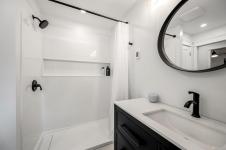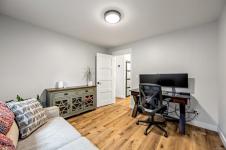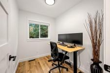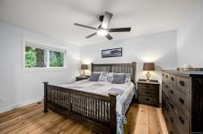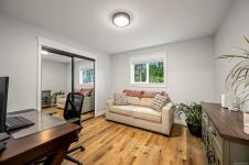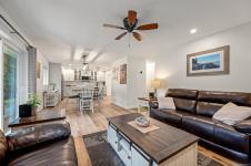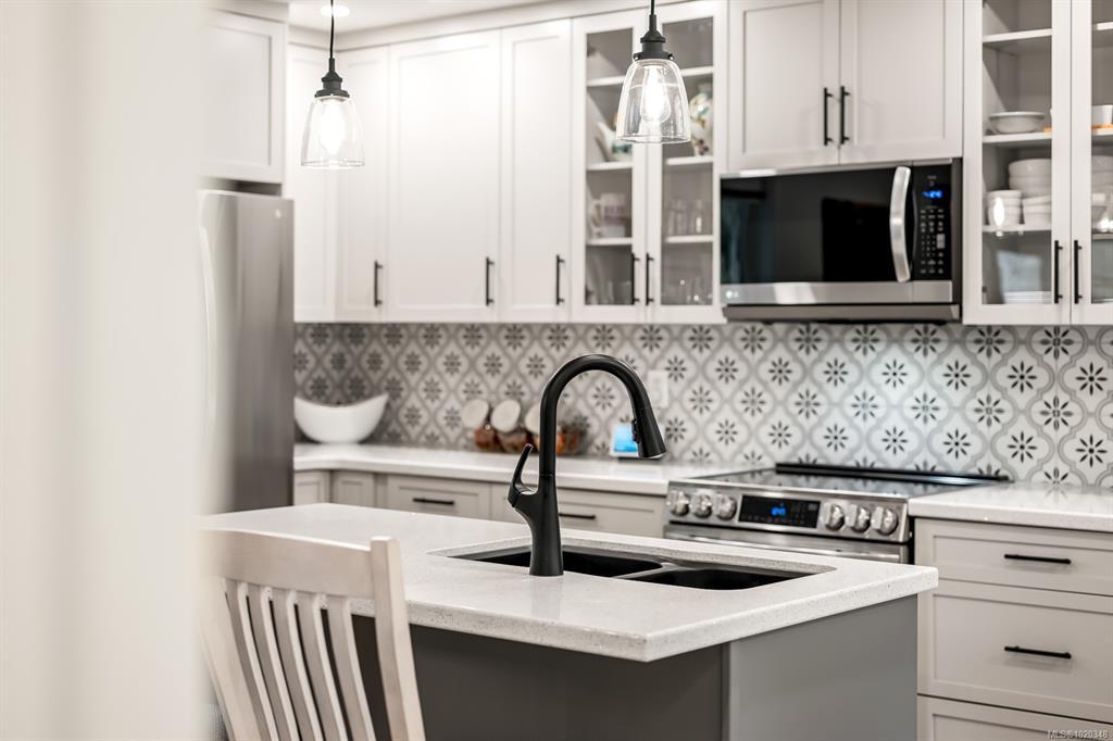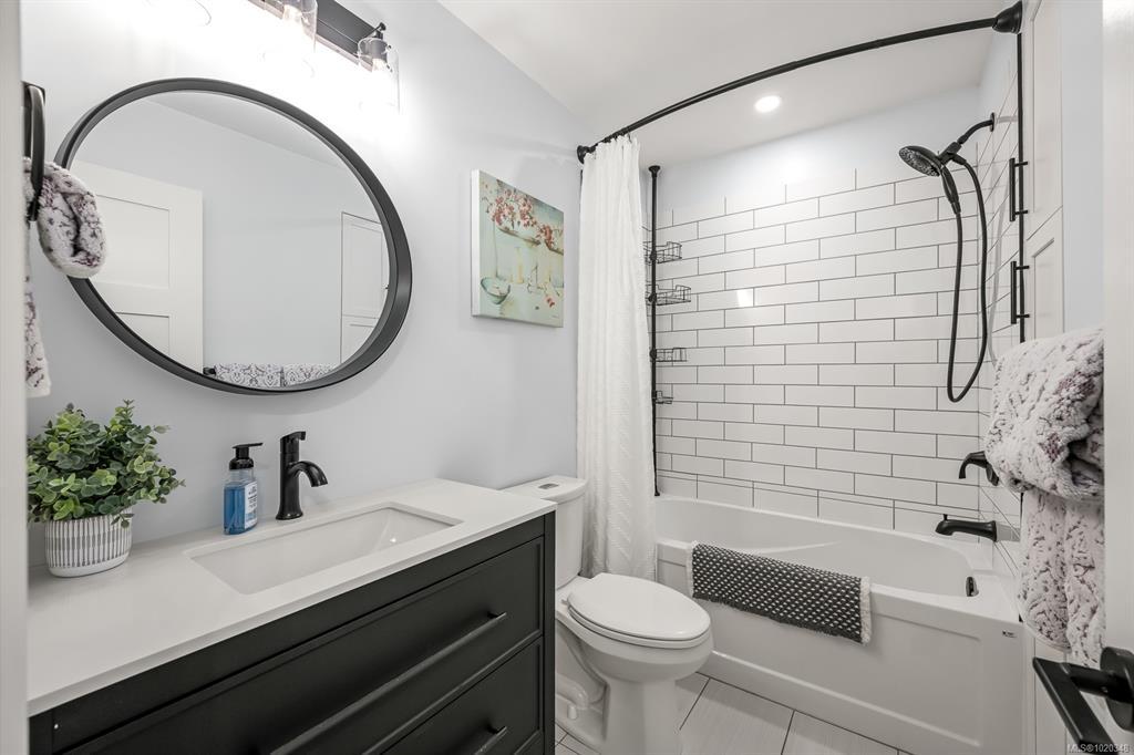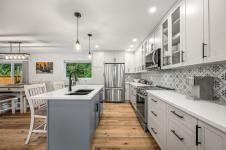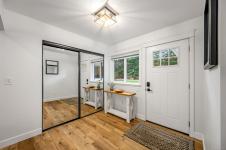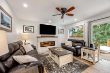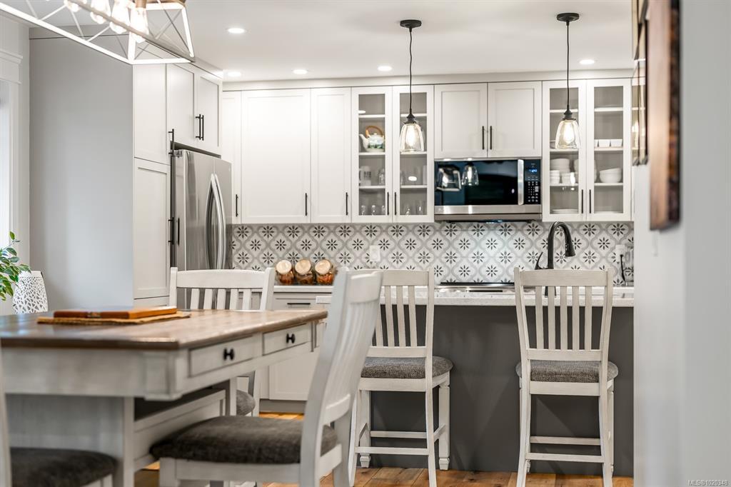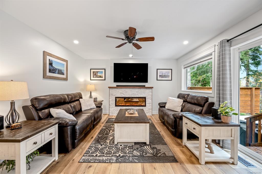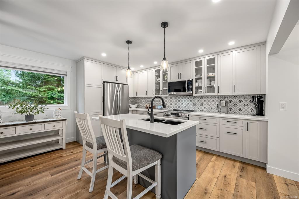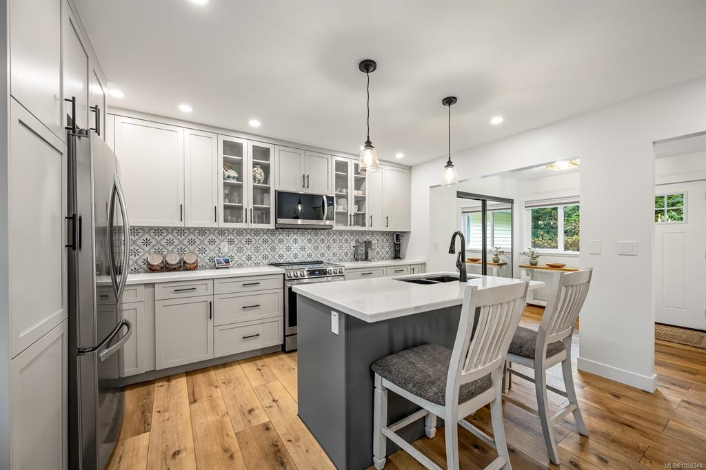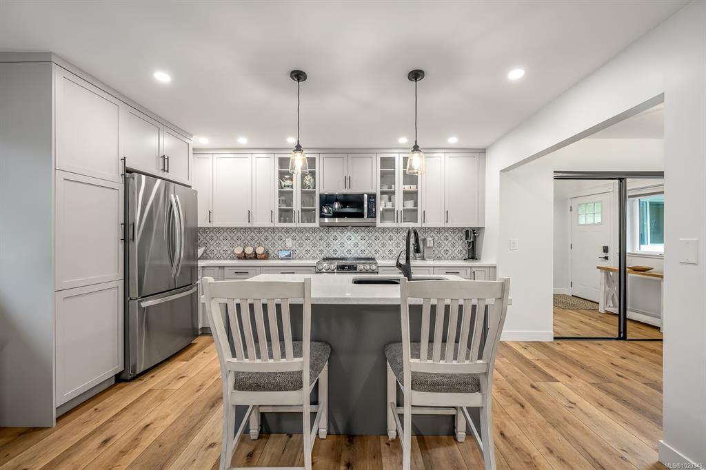 Fully renovated from top to bottom, this open concept 3 bedroom, 2 bathroom home offers true move-in-ready appeal. Step inside to an inviting living space highlighted by smart WiFi LED lighting throughout, custom window blinds, and a stylish electric fireplace. The country-style wide-plank flooring flows seamlessly through the main living areas, enhancing the home’s charm and character. The brand-new designer kitchen features high end stainless steel appliances, quartz countertops, an elegant tile backsplash, and soft close custom cabinetry. The spacious primary suite includes a luxurious ensuite with heated tile flooring. Additional updates include new windows and doors, a modern hot water tank. The efficient forced-air heating with a heat pump and he durable metal roof (installed in 2013) provides lasting peace of mind.
