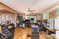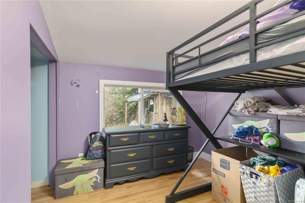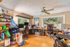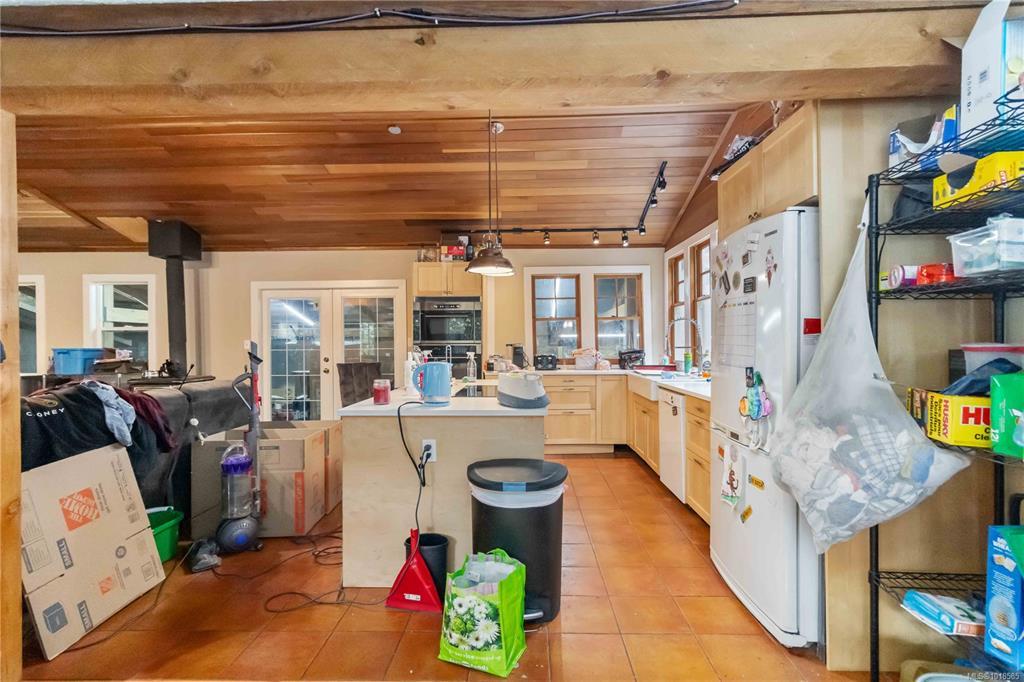 Discover this charming 1.24-acre property in the Highlands—just 10 minutes from Costco and Millstream Market. Originally a 1989 manufactured home, it was beautifully converted in the early 2000s into a spacious 3-bedroom plus den rancher. Enjoy an open, modern layout featuring a large kitchen with quartz counters, a bright family room, a living room with vaulted ceilings and cozy woodstove, and a separate dining area. The primary bedroom includes a 2-piece ensuite, with two additional bedrooms, a den/office (potential 4th bedroom), and laundry area. Highlights include laminate floors, Hardie board siding, and a heat pump (requires servicing). Outside, relax on the private patio surrounded by a park-like setting with level lawns, gardens, a stream, trails, and a treehouse. Detached workshop, storage building, and ample parking with RV space. New well pressure tank. A peaceful family-friendly property—perfect for kids and pets. Some notice required for showings, as it is tenanted.