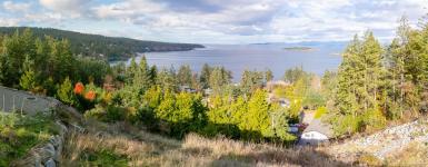 Discover an exceptional opportunity to build your dream home in picturesque Nanoose Bay. This expansive 0.64 acre lot showcases breathtaking panoramic views of the ocean, surrounding islands, coastal mountains, and sweeping shoreline. Situated in one of the Island’s most sought-after locations, you’ll enjoy peaceful coastal living just minutes from Fairwinds Golf Club, Schooner Cove Marina, Beachcomber Park, and miles of scenic trails. The property offers ideal topography for a luxury level-entry custom home—architectural plans available for a stunning high-end residence. Watch eagles soar, whales play, and ships pass through the Salish Sea from the comfort of your own home, or take in the ever-changing hues of sunrise and sunset across the water. With world-class recreation, natural beauty, and convenience all nearby, this remarkable lot captures the very best of the Nanoose Bay lifestyle. Site is cleared w/ services to the lot line. NO GST! Trees along lower lot line are yours.