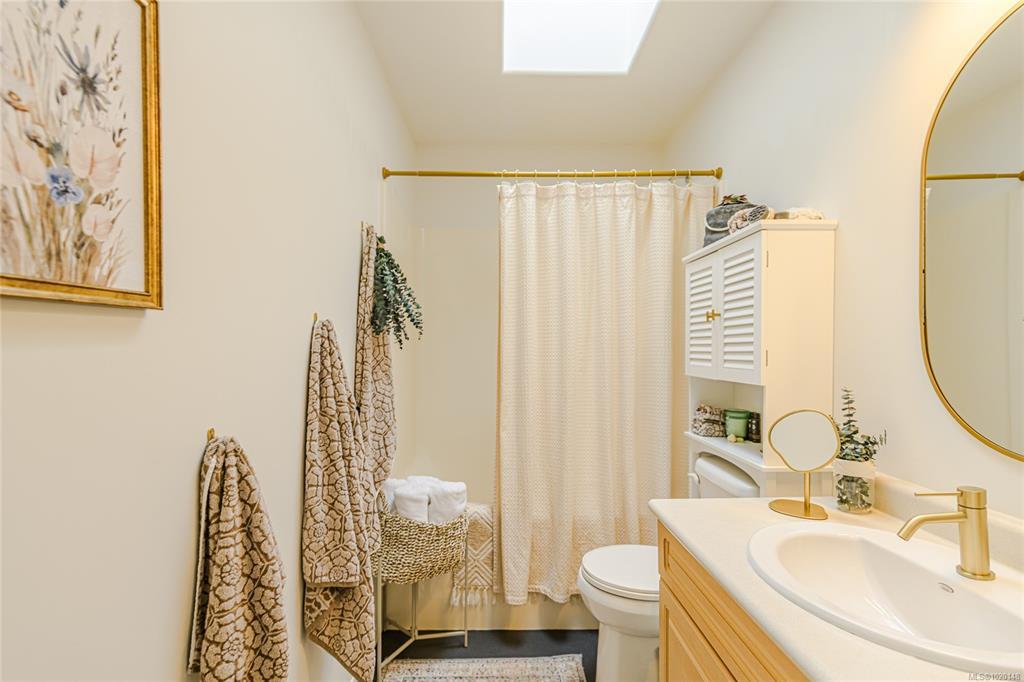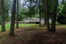 Fully renovated and move-in ready, this charming 3-bed, 2-bath rancher sits on nearly 1 acre of private, landscaped grounds. The bright kitchen with skylights flows into a spacious dining area and cozy living room with a propane fireplace and heat pump for year-round comfort. A welcoming family room with French doors opens to the back patio and wraparound deck—perfect for relaxing or entertaining. The primary suite offers a walk-in closet and ensuite, while a long, extra-wide driveway provides ample parking for RVs, boats, and multiple vehicles. Complete with a detached shop, this home blends comfort, style, and functionality.