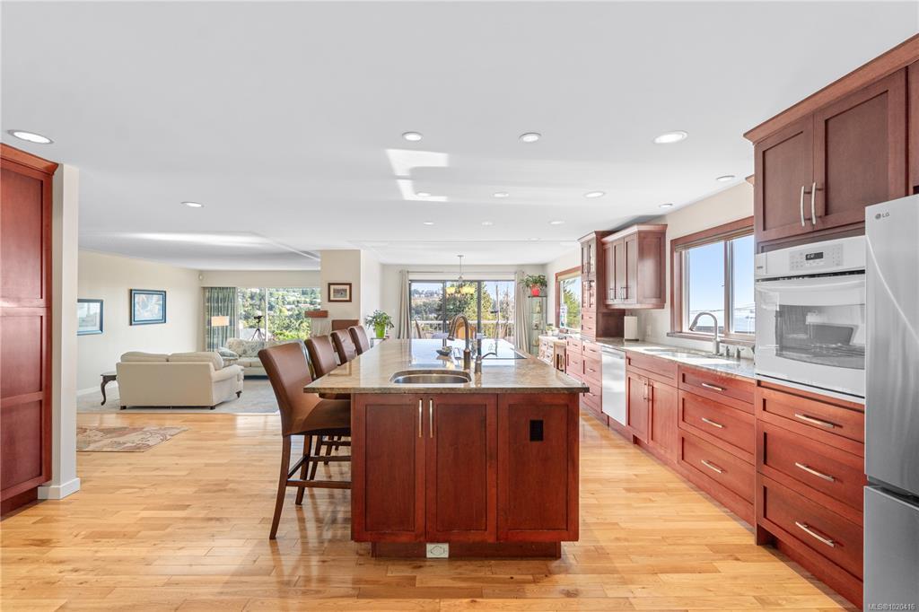 Desirable area, Lynn burn ocean view home, over 3900 sq/ft renovated home with open floor plan for entertaining, perfect for the family gatherings, this home is truly one of a kind, main floor open floor plan, with huge kitchen, featuring large Island, the dining room offers ocean views, access to one of the front decks, the family room has access to the back deck and features gas fireplace, and is open to the kitchen, the living room also has a fireplace and ocean views, the primary bedroom offers large walk-in closet beautiful ensuite, access to deck, the main bathroom just updated, there are two more bedrooms on this level, Downstair offers a grand entry, Media room, large rec room, laundry room, storage room that could be bedroom or den, a 3 piece bathroom, access to the garage, efficient heating with large pellet stove. Loads of parking for your RV or boat, lot over 10,000 sq/ft fully landscaped. This home is truly a pleasure to show. Pride of ownership both in and out