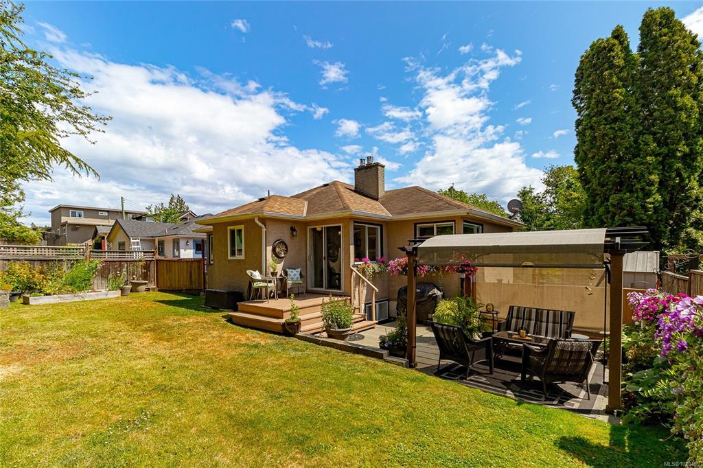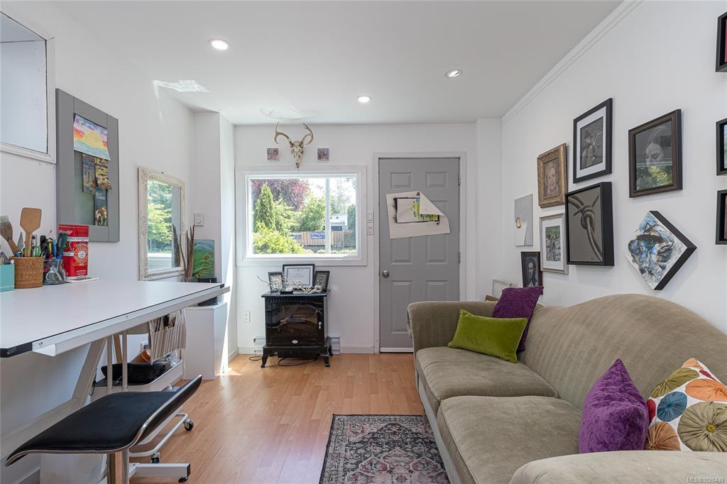 OH Sun 2-4 Timeless mid-century character blends beauty w modern updates in this 4 bedroom + 2 bathroom including a 1 or 2 bedroom suite. Updated eat in kitchen w newer cabinets, counters, flooring & modern backsplash. Sun-drenched living room is perfect for relaxing, complete w gas fireplace and expansive windows. Large primary easily accommodates a king bed and generous second bedroom complete the upstairs. The lower level offers flexibility w a separate dedicated office/art studio & 1 bedroom suite complete w separate entrance and laundry (could turn into 2 bedroom for added revenue). Other features include - gleaming refinished wood floors, updated bathroom, vinyl windows, newer lighting, new hot water tank, fresh designer color paint & plenty of parking including space for the RV. Enjoy mature landscaping & unwind in the fully fenced backyard —ideal space for kids, pets & avid gardeners. Within walking distance to the Cedar Hill Golf Course, walking trails, Galloping Goose.