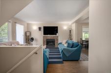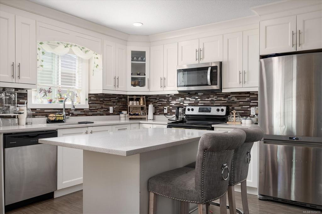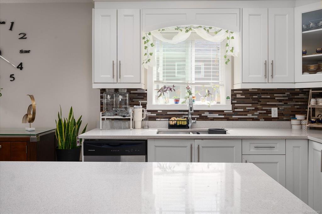 Welcome to this thoughtfully designed home on a corner lot backing onto the green space of Howard Ave Park. This property offers exceptional value for families, investors, or future development. With 2,700 sqft over three levels, the main residence features 3 bedrooms and 3 bathrooms, including a spacious primary suite with walk-in closet and ensuite. The open-concept main level boasts a stylish kitchen with quartz countertops, large island, and seamless flow into the dining area and bright living room with cozy gas fireplace and access to a west-facing deck—perfect for entertaining. The walk-out lower level includes a legal 2-bedroom, 1-bath suite—ideal as a mortgage helper. Additional features include a detached garage and R5 zoning with potential (buyer to verify) for a carriage house. The yard is lined with mature fruit trees. Conveniently located near VIU, schools, shopping, parks, and transit, this rare offering blends comfort, functionality, and long-term potential.