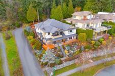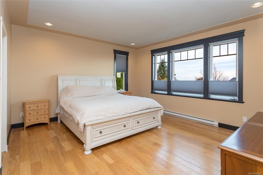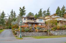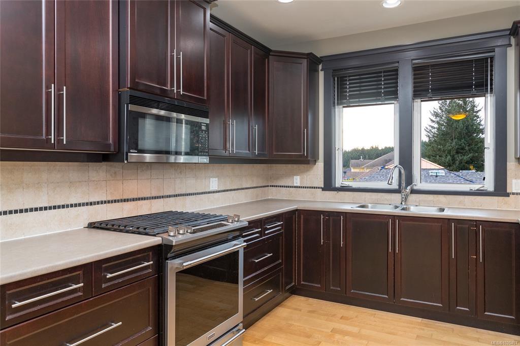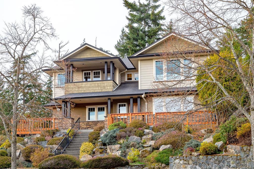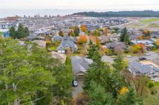 Enjoy exceptional space, privacy, and south-facing ocean views in this elevated Royal Bay home. 5 Beds, 4 baths, with suite, and a double car garage! Positioned above neighbouring properties, it offers sweeping vistas of the Olympics from a secluded front balcony, plus a fenced west-facing patio for sunny outdoor living. The main level a generous primary suite with full ensuite and walk-in closet. The bright walk-out lower level offers great flexibility for guests, in-laws, or a self contained income generating suite. Additional unfinished space with its own entrance adds storage or further development potential. Recent upgrades include a mini-split heat pump and new flooring in the bedrooms and lower level. Features include natural gas heating, hot water on demand, gas stove and dryer, BBQ hookup, HRV, and central vacuum. Located in sought-after Royal Bay, close to golf, shopping, schools, and parks—this home offers comfort, versatility, and outstanding views.