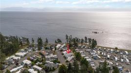 OCEANFRONT LIVING! YOUR OWN AFFORDABLE HOME ON ITS OWN LAND & YOU'RE JUST STEPS TO THE BEACH! Welcome to Olympic View Park, Greater Victoria's premier, oceanfront, manufactured home development just 6 mins to Sooke Town Centre. Well maintained 2 bed, 2 bath double wide home on a sunny, level, fenced, gated & beautifully landscaped 3609sf/.08ac, representing the ultimate in carefree, westcoast living. Low monthly fee of $117 for water/garbage pickup. Kitchen w/plenty of cabinetry/counter space & eating area. Formal dining rm - perfect for family dinners. Entertainment size living rm & separate family rm opens to enclosed porch. 2 bedrooms incl primary w/skylit 3pc ensuite. Skylit 4pc bath & laundry rm w/sep entrance. 1.5 yr old roof/skylights, newer toilets, concrete crawlspace, shed/shop, patio, garden w/gate to path to beach. Watch the Swiftsure from your own beach chair & enjoy whale watching, beachcombing & worldclass fishing! Pet friendly & underground services. New Silver Label!