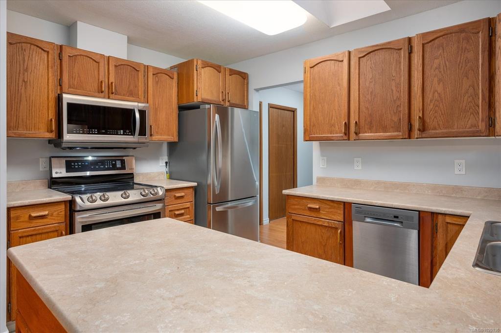 Nicely updated 1-bedroom plus den, 2-bath patio home in The Pioneer Manor—a welcoming, pet-friendly 55+ community in the heart of Parksville. Just a short stroll to shopping, the beach, and all essential amenities, this charming home offers convenience and comfort in equal measure. The spacious living and dining area opens to a private south-facing patio with an overhang, ideal for relaxing or entertaining. A bright breakfast nook complements the well-appointed kitchen featuring stainless steel appliances and solid wood cabinetry. Five skylights fill the home with natural light, creating an inviting atmosphere. Recent updates include fresh paint, stylish window coverings, a new water heater, and heat pump for efficient heating and cooling. The complex provides covered parking, a workshop, greenhouse, guest suite ($20/night), community rooms, and garden plots—perfect for enjoying the Island lifestyle.