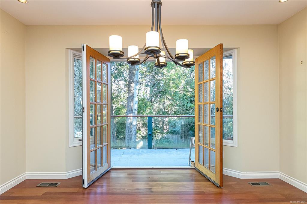 The main floor includes an open-concept kitchen with oversized island, flowing into formal living and dining areas with cherrywood flooring, built-ins, and French doors to a west-facing deck. Upstairs are three bedrooms, including a generous primary suite with walk-in closet, dressing area, and ensuite. The walk-out lower level offers two more bedrooms, a 3-piece bath, and a cozy family/media room with gas fireplace—ideal for guests or extended family. The fully fenced, level backyard provides space to garden or play. With prime walkability to beaches, parks, and Cadboro Bay Village, this is a smart investment for those with vision.