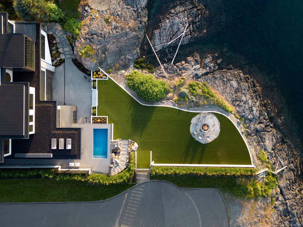 Experience Unparalleled Luxury at Vista del Mare. Over .5 acres of prime waterfront, this architectural masterpiece,by Robert Blaney, brought to life by Terry Johal Developments. Winner of 4 CARE Awards- Best Single Family Detached Home, Custom Millwork, Primary Suite & Innovative Features. Step into grandeur w/10-ft. ceilings &show-stopping steel &white oak floating spiral staircase. Expansive floor-to-ceiling windows on all 3 levels offer uninterrupted views of Haro Strait & San Juan Island. Neutral colour palette &accented targeted lighting by designers Moi, Flos &Bocci. Sky-lit covered patio, adjacent to your complete outdoor kitchen w/Hestan grill & Fontana Forni pizza oven. Enjoy a dip in the heated pool & a rinse in the outdoor shower. Car enthusiasts will appreciate 3-car garage w/ 2 vehicle elevators. Above, a separate, guest suite w/living area, bed & bath. Custom-designed home theatre, fully equipped gym &bath, enticing bar & game room w/sliding doors provide outdoor access.