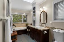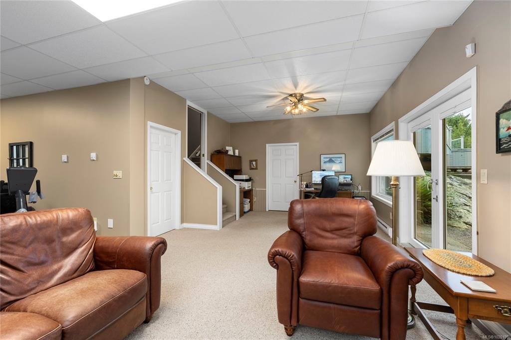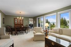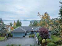 Welcome to this stunning ocean-view home on a .62-acre lot offering privacy, space, and sweeping coastal views. Enjoy exceptional outdoor living with multiple tiered decks, two dining areas, a hot tub, and an awning-covered BBQ space with propane hookups. Inside, the main floor features two living and dining areas, a beautifully renovated kitchen with custom cabinetry, heated tile floors, and high-end Miele and Sub-Zero appliances. The primary suite includes a walk-in closet and spa-inspired ensuite with a soaker tub, tiled shower, and heated floors. Two additional bedrooms and a full bath complete the main level. Additional features include three propane fireplaces, main floor laundry, double garage with epoxy flooring, new windows and French doors, new hot water tank, RV parking with 30-amp power, and a large rec room. Located near Beachcomber Marina and overlooking Dorcas Point, across from beach access—this is West Coast living at its finest. All info and data approximate.