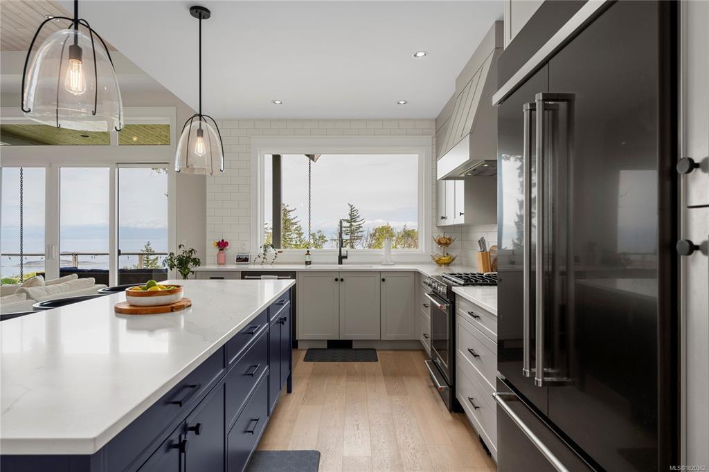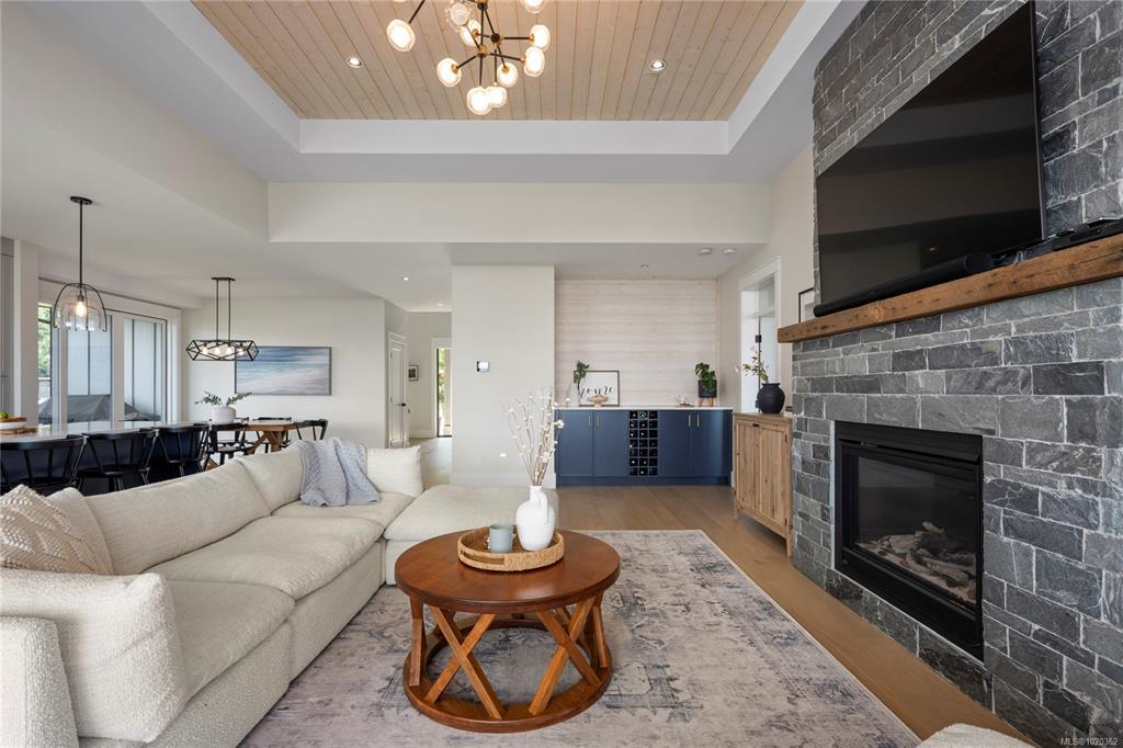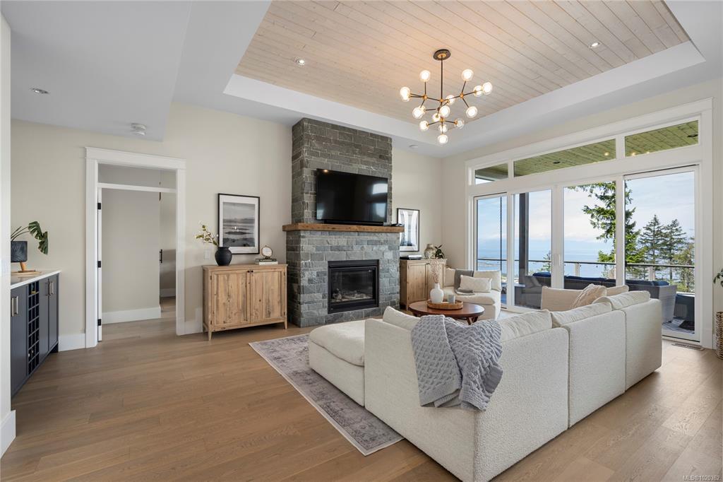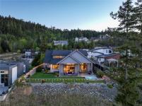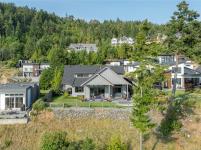 Lantzville Foothills luxury home featuring serene ocean, mountain & city views. This modern craftsman 5 BD, 4 BA home has oversized windows on the main that add natural light, & showcase the ocean, mountain & city views. Bright, open dining & kitchen w/ large quartz island & eating bar, & a convenient butler's pantry. Enjoy the scenery from your living room while cozying up to the floor-to-ceiling rock fireplace. Main level primary BD w/ 5-PC ensuite, large closet & walk-out patio access. Outside enjoy picturesque views of the Winchelsea Islands, coast mountains, North Nanaimo, Lower Mainland & planes landing at YVR. Lounge by the NG fireplace or in the heated dunk pool. Upstairs has 3 spacious BD, 5-PC BA, flex area & access to the 1 BD, 1 BA suite w/ its own garage & heat pump. 0.42 acre level lot with front & rear yards, methodical landscaping w/ blooms to enjoy from spring to fall. Fully irrigated lot w/ Rachio, L2 EV Ready, NG furnace & HWOD, 3 car garage w/ storage room & crawl.