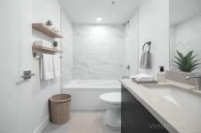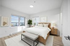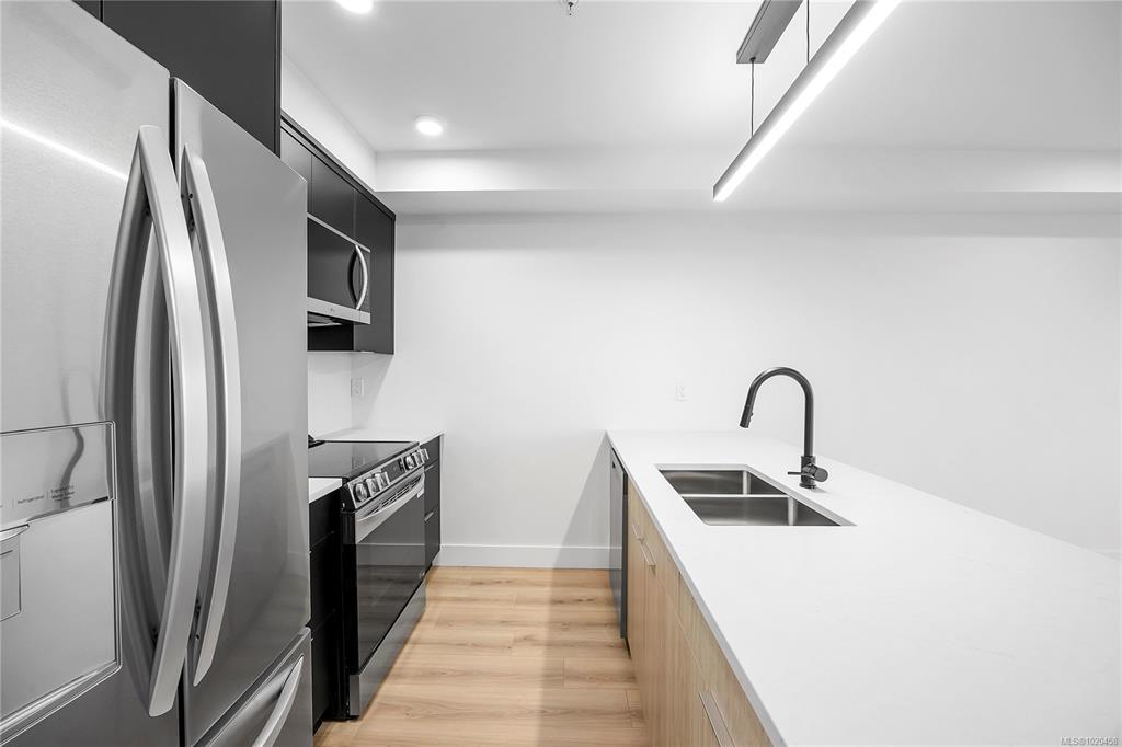 Brand new, never lived in, and best of all—no GST. Welcome to Lumina, one of Nanaimo’s newest modern residential communities. This top-floor corner suite offers stunning ocean views, two bedrooms, two bathrooms, and a bright open-concept layout with high-end finishings throughout. The floor plan is perfect for working professionals or young families who want style, convenience, and low monthly costs—the strata fee is only $222 per month. Bring your pet along, maybe use the second bedroom as a home office or you can rent this beautiful suite as an investment. Secure underground parking, a gorgeous rooftop terrace to take in some rays and enjoy the endless ocean views, and unbeatable walkability make this home stand out. You’re steps to the waterfront, ferries, coffee shops, grocery stores, and boutique shopping. A rare opportunity to own a brand-new home in one of Nanaimo’s ideal locations. Book your showing today! All measurements are approximate.
