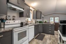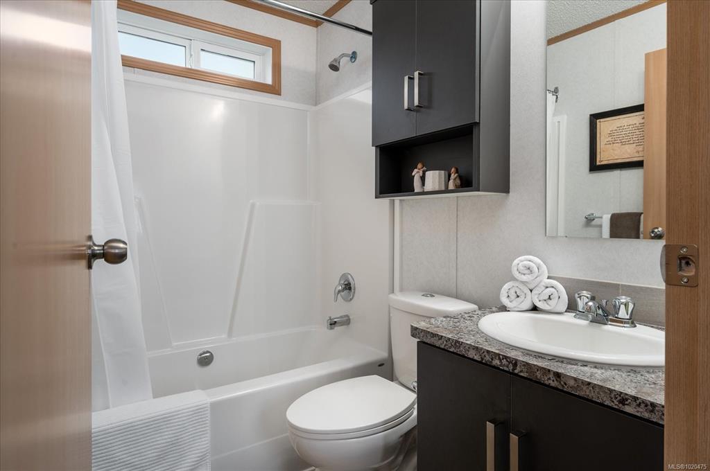 I have found it! Looking to retire? Or just looking to downsize? Then do not miss this almost new 944 sq ft 2 bedroom 2 bath manufactured home. It is a very open plan with vaulted ceilings, large kitchen with many cabinets, build in pantry, eating bar or kitchen work station, double sinks, blinds for the windows and a separate laundry room with full size side by side washer and dryer as well as extra storage. Primary bedroom has 4 piece ensuite ,walk in closet and even a distance view of the ocean and coastal mountains. Separate storage shed outside is perfect for all your tools weed eater etc. Two small decks for each door access are a plus. This home is located in Parklands Mobile Home Park, a well managed 55+ park in ever popular Lantzville. It is approximately a 10 minutes drive to the village, desirable beaches, Winchelsea golf course, and North Nanaimo shopping. Pet friendly with restrictions. It is a must to see.