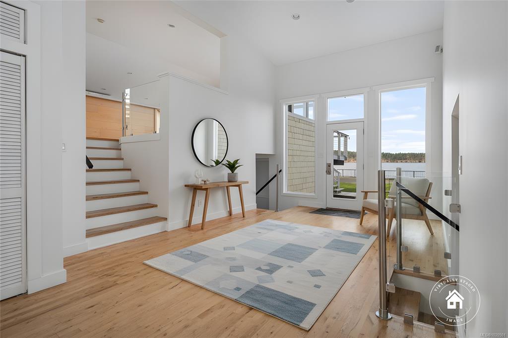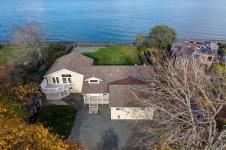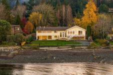 Stunning walk-on waterfront home on arguably the best beach in Lantzville! Enjoy crabbing, kayaking, and beach life from your own backyard. This approx. 4000 sq ft, updated 4 bed/3 bath home sits on a private .38-acre lot at the end of a quiet road—peaceful yet close to everything you need. Incredible ocean, mountain & Nanoose Point views fill the home with natural beauty. Excellent layout for a home office, Airbnb, or guest space. Over 25m (80 ft) of true walk-on