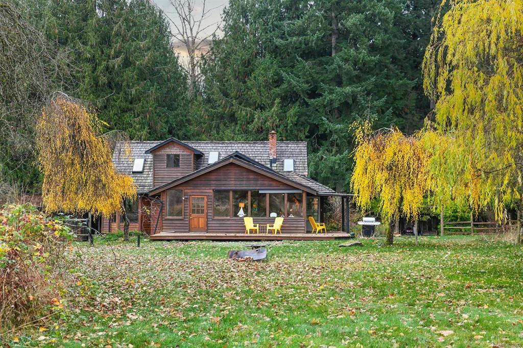 Sold. Meander down a windy treed drive, across a tiny creek, through the forest and into the open meadow, you have arrived. It is a magical little homestead, tucked away from the noise and commotion of the world. This classic old timer was built in the 40s and has been lovingly cared for through the decades. Large windows in the living and dining room invite in sweeping views to the snow-capped mountains in the distance. Solid wood floors and large old timbers provide a rustic, cozy feel to the farmhouse. There are a bedroom and bathroom on the main floor and another bath and two more bedrooms upstairs. Downstairs is laundry, storage and furnace. There is a very large, over height, detached shop, with an in-law suite above. And a secondary studio for arts, crafts, yoga, or whatever your dreams can imagine. A tiny creek feeds a small pond, complete with dock at the far corner of the property. It is all so pretty you will never want to leave