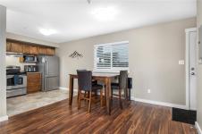 Welcome to this beautifully designed two-storey townhome in a charming four-unit strata complex. This bright and spacious home offers three bedrooms and three bathrooms, including a large primary suite with a full ensuite and walk-in closet. The main level features a generous open-concept layout with a stylish kitchen showcasing stainless-steel appliances, bar seating, and pendant light. Perfect for entertaining, the kitchen flows effortlessly into the dining and living areas, while large windows fill the space with natural light.