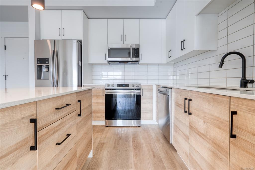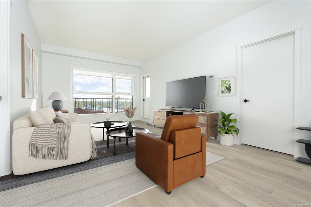 Welcome home to this modern 2-bed, 2-bath condo featuring a stunning wrap-around balcony and easy highway access to downtown! This elevated, south-east facing 3rd floor corner unit offers exceptional privacy, abundant natural light, and impressive views. Enjoy stainless steel appliances, soft-close cabinetry, quartz countertops, luxury wide-plank flooring, and plush carpet in the bedrooms. A heat pump provides efficient heating and cooling for year-round comfort. In-suite laundry and a dedicated storage room complete the space. This unit comes with one secure parking stall and an adjacent storage space. The building offers top-tier amenities including a rooftop deck, gym, dog run, community garden, recreation room, guest suites, EV charging stations, and visitor parking. Ideally located near catchment schools, shopping, daily conveniences, and bus stops for easy travel around Langford and downtown Victoria. Simply move-in ready, and simply worth it! Book your showing today.