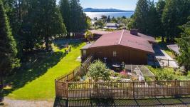 Designed for versatility, this 2,947 sq. ft. Craftsman/West Coast home is ideal for multi-generational living or income opportunities. The main floor has 3 generously sized bedrooms & 3 bathrooms, while a separate one-bedroom suite is perfect for guests or rental income. The open-plan living area is filled with abundant natural light, & an innate sense of serene comfort. Downstairs, a full bath and flexible space could transform into a second suite or business. Commandingly positioned above the quaint picturesque seaside village of Sointula on Malcolm Island, this home offers ocean & mountain vistas, captivating sunsets, all in a meticulously maintained park like setting. Sitting on 2.86 acres with fruit trees, & vibrant gardens, this property is a peaceful retreat with municipal water/sewer & potential for future subdivision (subject to approval). We invite you to explore the video tour & envision a life where architectural brilliance meets the serene landscapes of Malcolm Island.