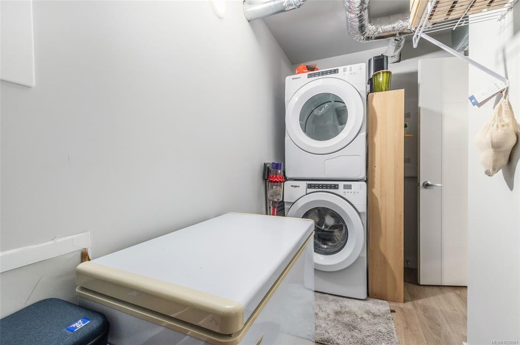This 2-bd, 2-bth unit at Lakeview Terrace is in a private part of the complex overlooking an Arbutus forest. In the smallest of the 3 buildings, this home offers the LARGEST floor plan in the development & is 1 of only 4 corner units w/ an OVERSIZED deck that gets afternoon & evening sun all summer. The corner layout also adds an extra window in the primary for beautiful natural light. The kitchen features quartz counters, S/S appl, a spacious island & tile backsplash. The primary has a walk-through closet & 3-pc ensuite, while the 2nd bedrm offers a walk-in closet w/ cheater access to the main bath. BUILT GREEN®, the home includes triple-pane windows, solar panels, an HRV system & heat-pump hot water tank for lower strata fees & utilities. The unit includes 1 parking stall & a bike locker. Residents enjoy a clubhouse w/ gym, yoga area, lounge & full kitchen. Ideally located in North Nanaimo, steps from Long Lake, trails, transit & North Town Centre. Potential CMHC rebate.