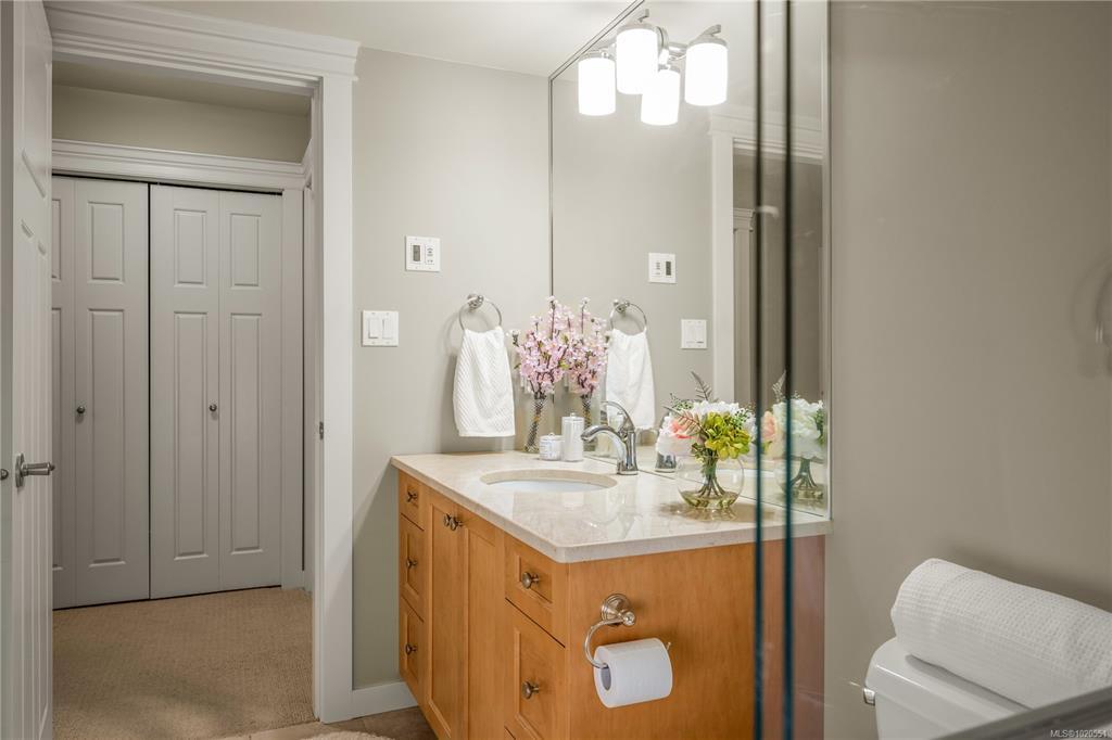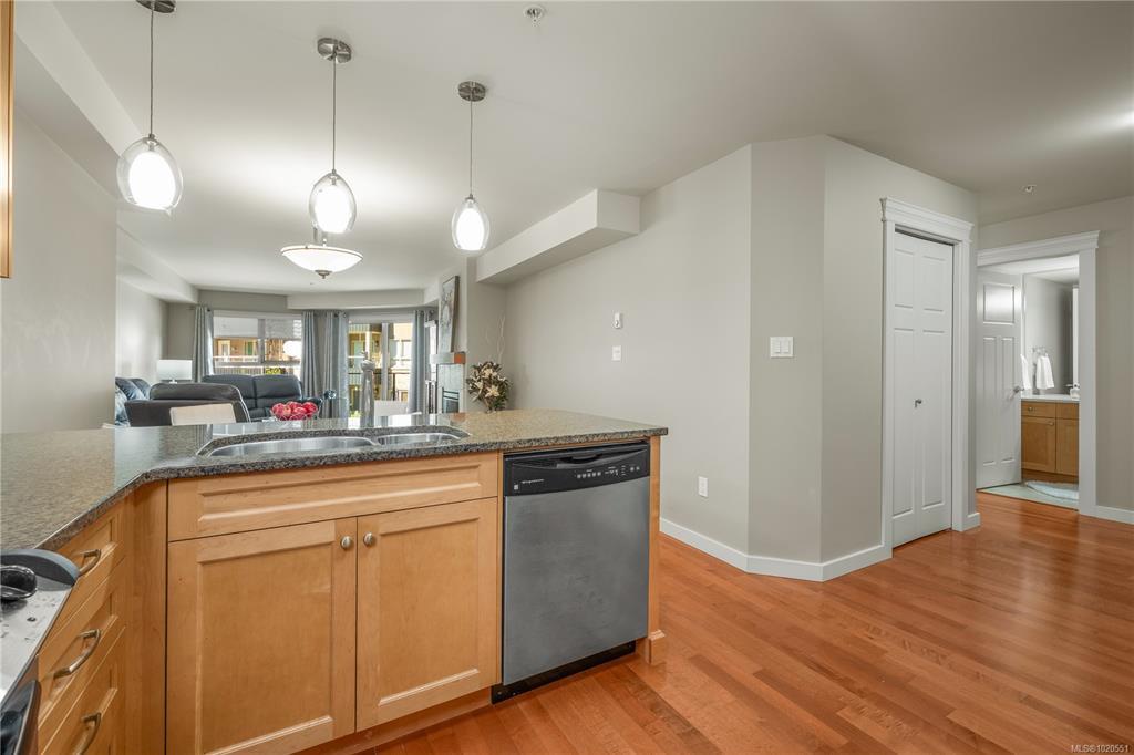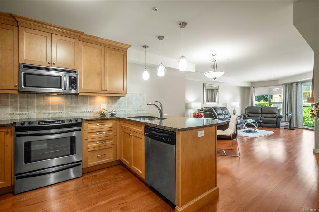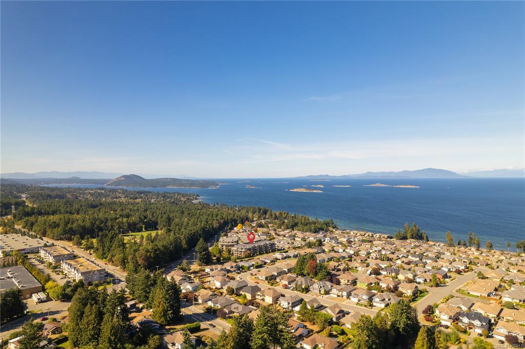 Experience easy coastal living in this beautifully maintained 2 bed, 2 bath executive condo in the heart of North Nanaimo. This bright, spacious home offers an inviting layout w/ ocean & mountain glimpses from the deck—ideal for morning coffee or unwinding at day’s end. Interior comforts include an electric FP, heated ensuite floor, in-suite laundry, & a new 2025 hot water tank, adding ease & function to everyday living. Set in a well-managed 55+ community, residents enjoy access to a welcoming clubhouse & recreational facilities, fostering connection & a relaxed lifestyle. A secure underground parking stall plus storage locker provide added convenience in this quiet, well-kept building. Enjoy the best of North Nanaimo right outside your door—walkable access to shopping, restaurants, medical services, parks, transit, beach spots, & all major daily amenities. Whether you’re downsizing or seeking a lock-and-leave home base, this condo blends comfort, practicality, & an enviable location.
