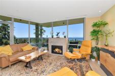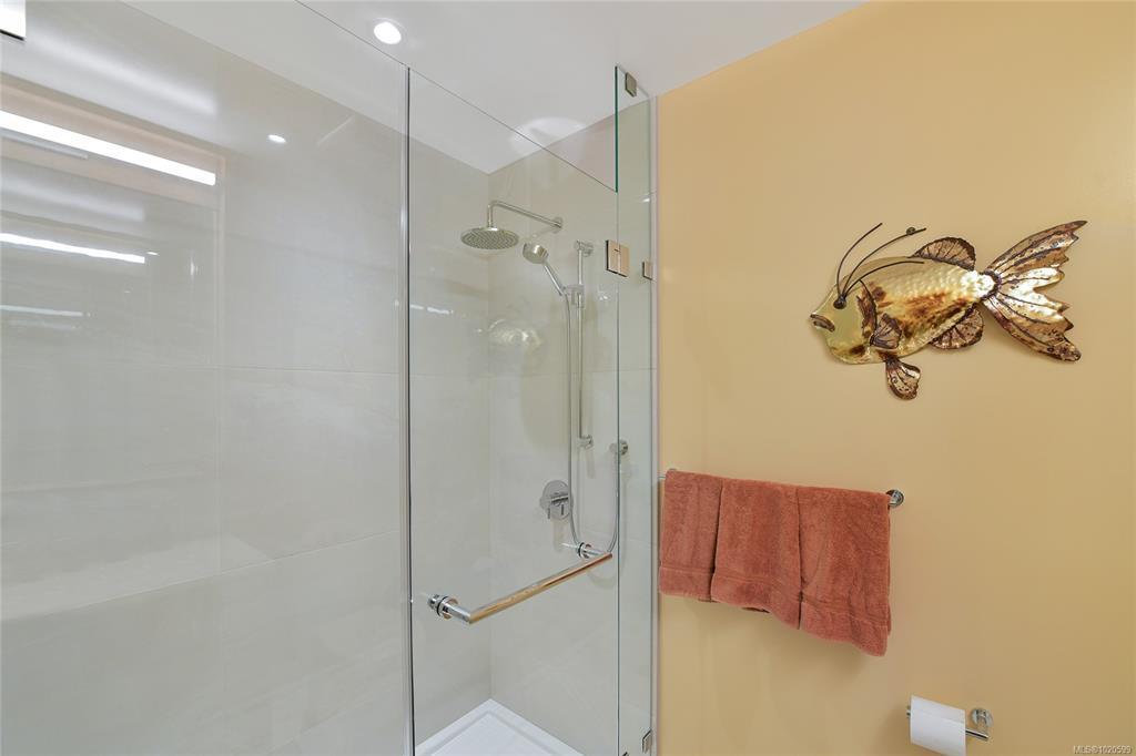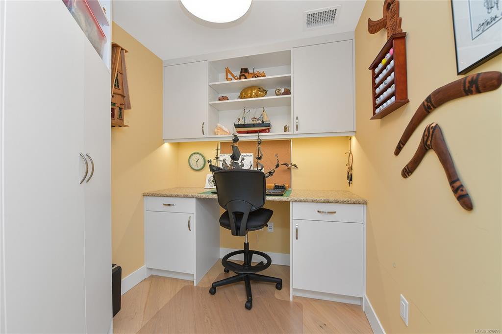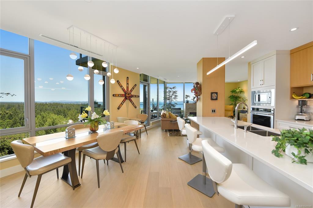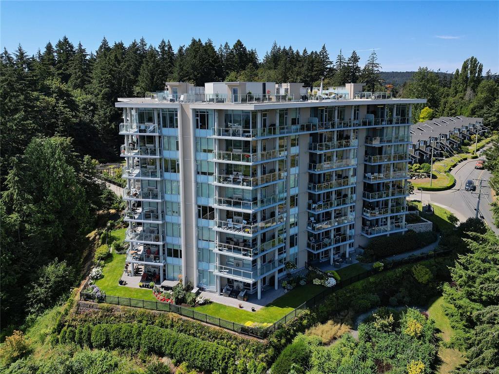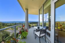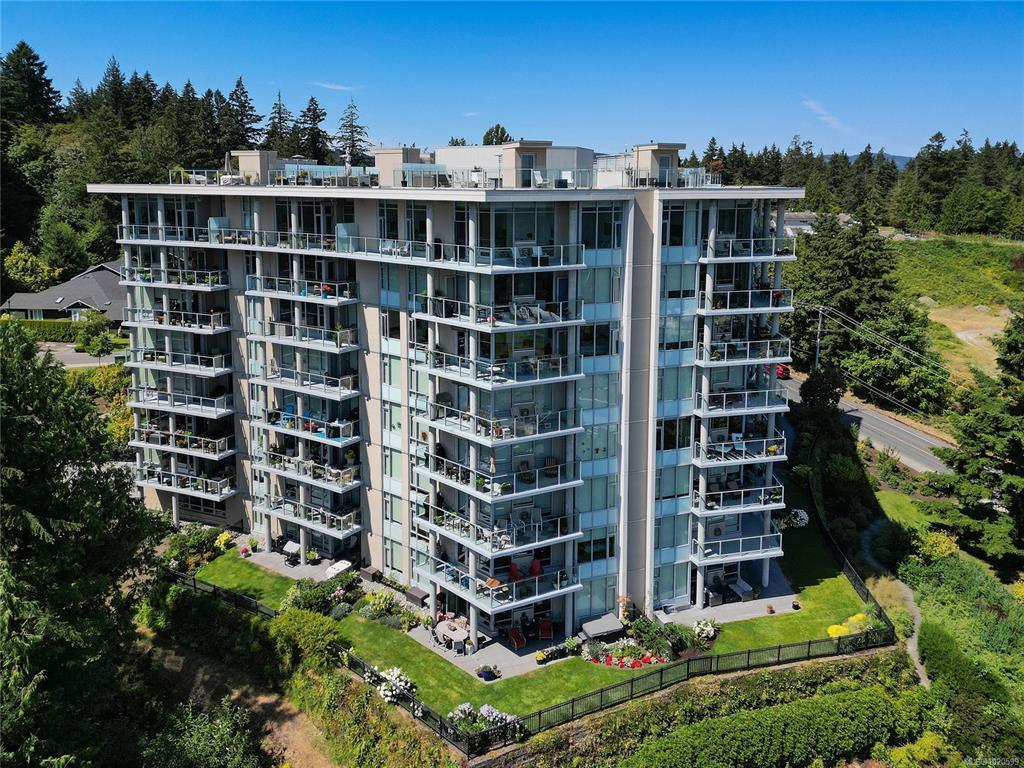 PINNACLE at Sayward Hill! Rare opportunity to own one of the most desired locations in this near-new concrete/steel 2019 by JAWL DEVELOPMENTS overlooking CORDOVA BAY GOLF with unobstructed commanding views of Mt. Baker, Salish Sea & beyond. Exceptionally spacious, contemporary 1844sf home, 2BD/2BA, Media Room/Home Office plus bonus Flex room offers a great layout. Top quality finishings with gourmet kitchen, pantry, quartz counters, engineered hardwood floors & in-floor heating in both bathrooms. AC/heat pump, rough-in for central vac, Gas FP, custom built-ins & high-end closet organizers just some of the upgrades. U/G secure parking stall, large storage locker and building amenities inc: fitness gym, workshop, bike storage & SW outdoor pergola gardens. Outdoor entertainment sized, sunny 250sf balcony offers the most stunning OCEANVIEWS in the city, best golf in town just a chip away & Mattick's Farm local shops just down the hill.