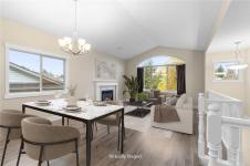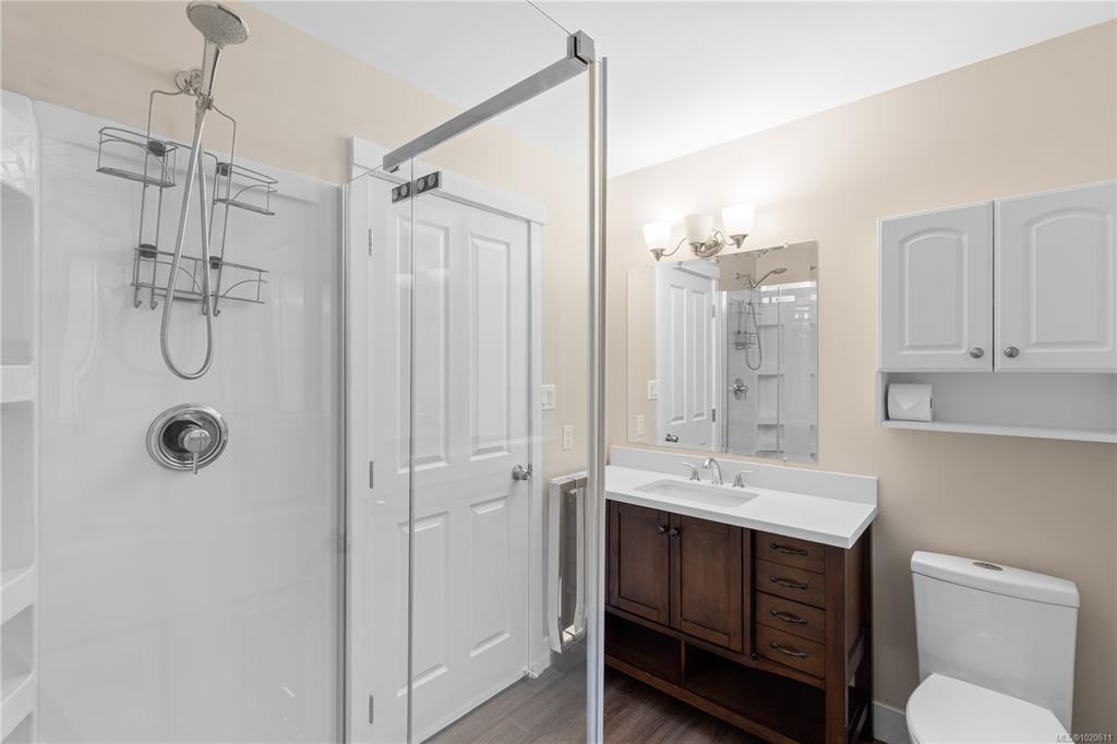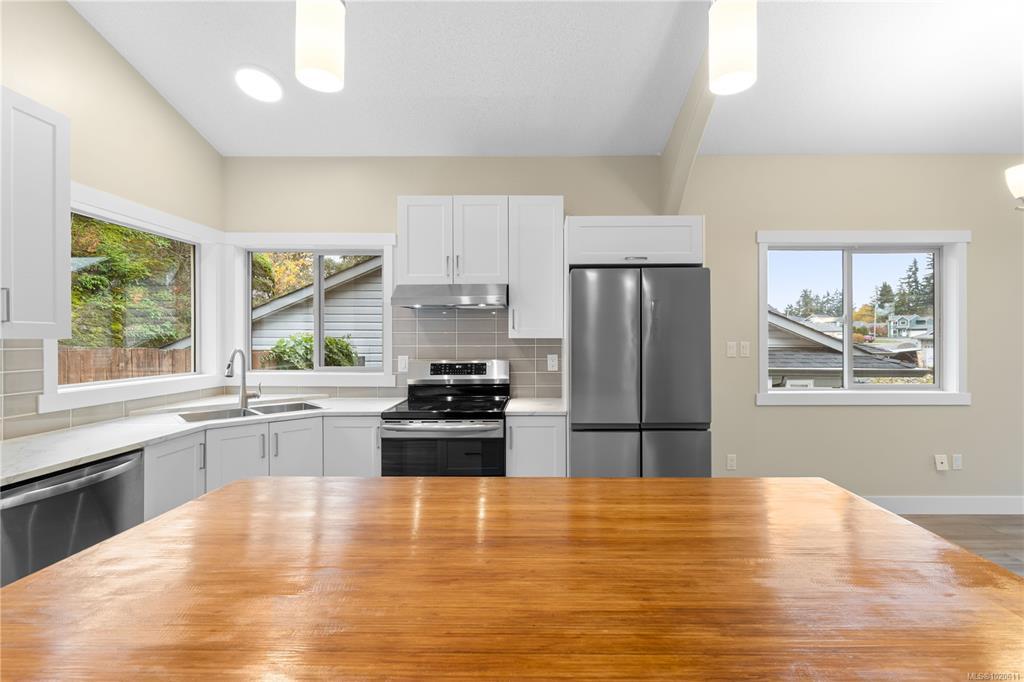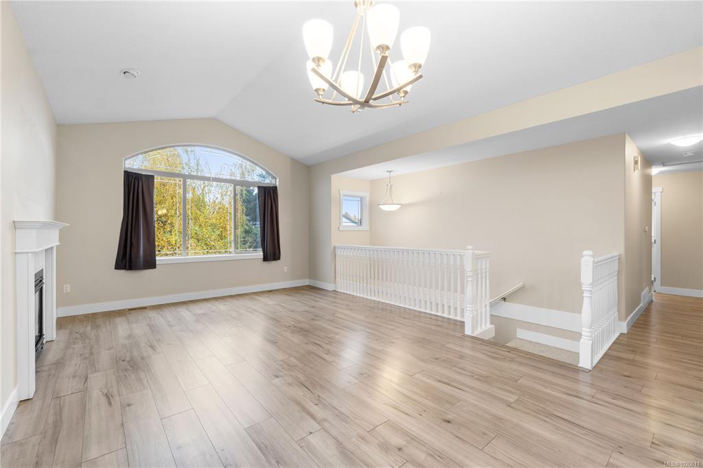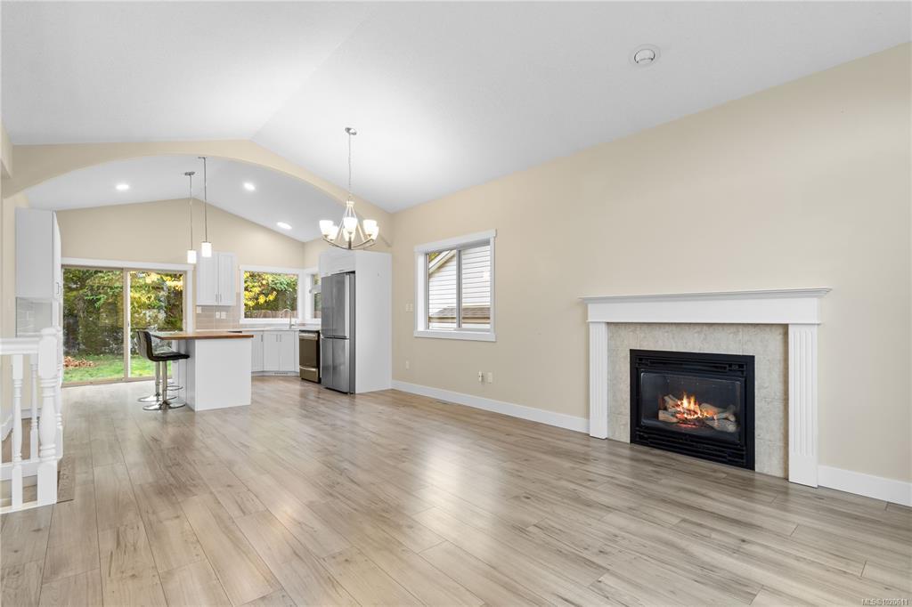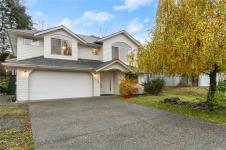 Fantastic family home walking distance to syuwenct (previously Coal Tyee) Elementary. The open-concept main level is ideal for families and entertaining, featuring 11' vaulted ceilings, an updated kitchen with tons of storage, ample dining space, and a cozy gas fireplace in the living area. Sliding glass doors open onto a super private back patio and yard space, perfect for hanging out around the firepit. The spacious primary bedroom features a huge deep-set window for space and light and a full 4pc ensuite, while the oversized bedroom/den combo can easily be converted back to 2 separate bedrooms with original door and wall framing still in place. The lower floor offers 2 more bedrooms plus another den/office (for a total of 6 potential sleeping rooms!), a family room and 3pc bathroom, providing a great layout for potential secondary suite or in-law accommodation. Located in a great family neighborhood close to Beban Park Rec Centre and the amenities of the Bowen corridor.