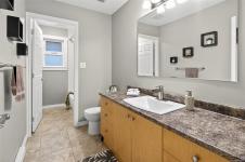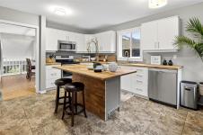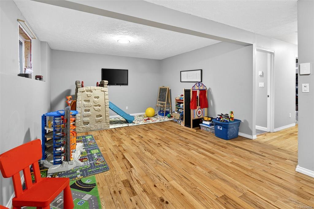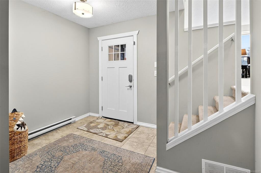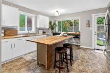 NEW LISTING! Updated and spacious single-family home just steps from quaint Saanichton Village, offering the charm of small-community living with full city convenience. This 4 bed / 3 bath home (with suite potential) sits on a large lot with a manicured private backyard, privacy hedges and recessed exterior lighting. The main level features vaulted ceilings, a wall of picture windows, hardwood flrs and a beautifully updated kitchen with butcher-block island, abundant counter/storage space, pantry, bar seating and direct access to the backyard/BBQ area. Three generous bedrooms + two full baths complete the main flr, including a primary with walk-in closet and full updated ensuite with soaker tub. The lower level offers a spacious entry/mudrm, 4th bedrm or rec area, full bath, laundry rm with sink, and access to the dble garage+huge crawlspace. Quiet setting with no front neighbours, stone retaining wall, and only 1 km walk to all Saanichton amenities. Mountain views and ocean glimpses!