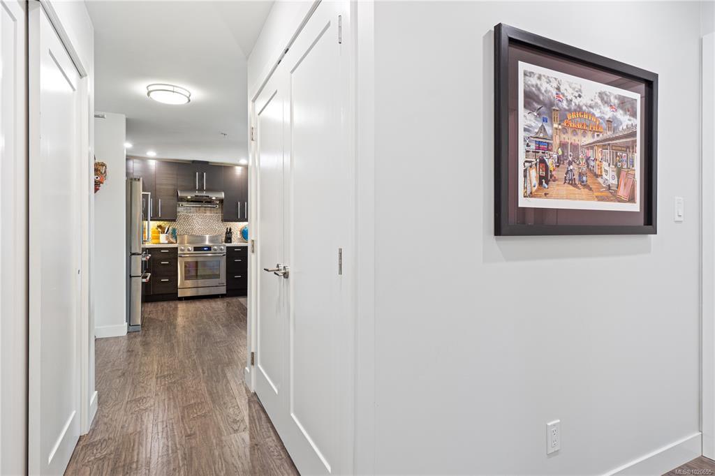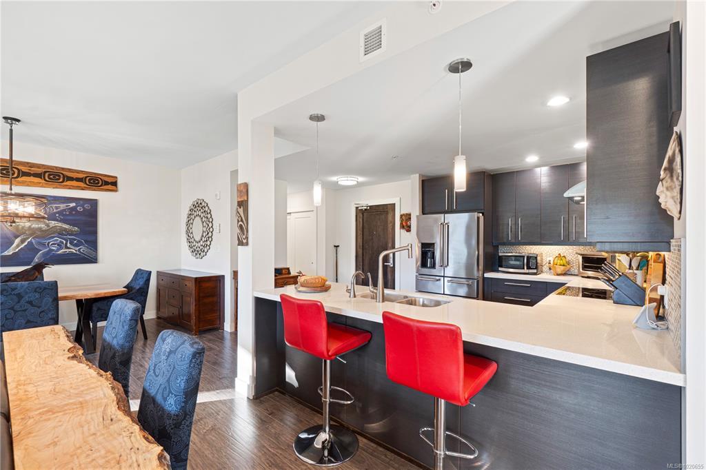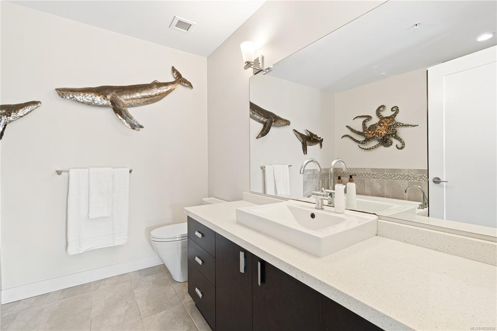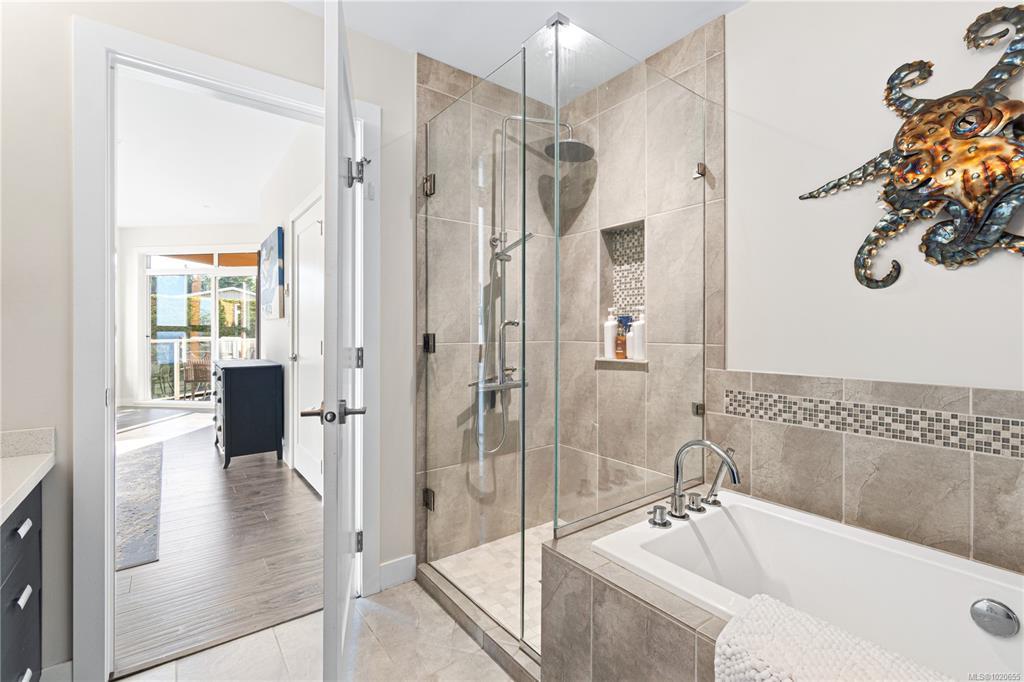 Step inside to a spacious, open-concept design bathed in natural light from expansive, floor-to-ceiling windows frame your spectacular ocean views, creating an inviting space to relax. The gourmet kitchen is a chef's delight, featuring sleek quartz countertops & stainless steel appliances. The primary bedroom offers tranquility, a walk-in closet, and direct access to the wrap-around entertainment deck with stunning ocean views—your private perch for morning coffee or evening sunsets. Indulge in the luxury spa-inspired ensuite with a separate shower & deep soaker tub. A spacious second bedroom and another full bath complete this elegant floorplan. Walking distance to downtown Qualicum Beach