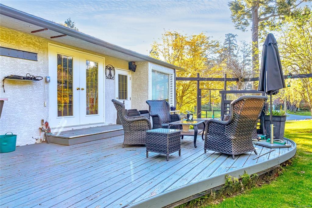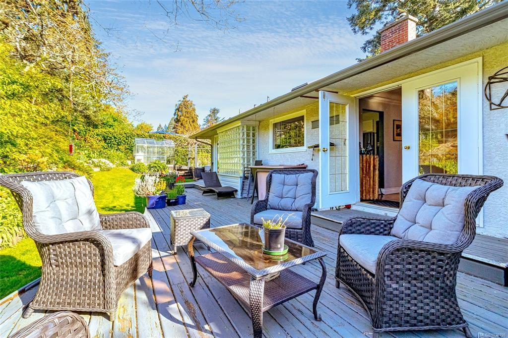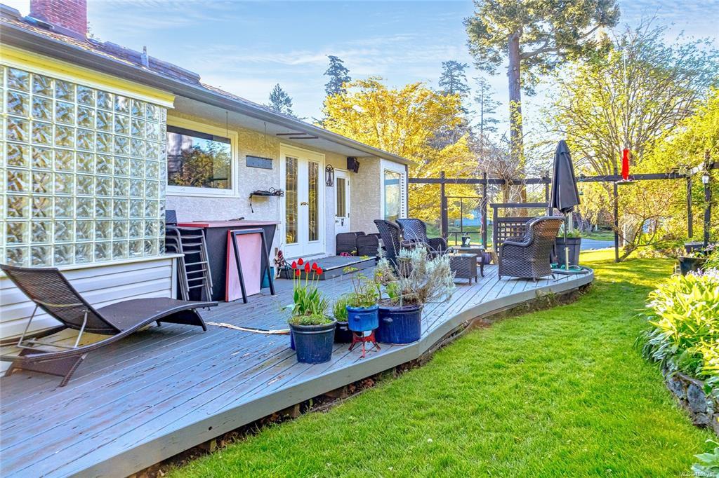 OPEN HOUSE SUN NOV 23 2025 2-4pm! Exceptional opportunity located in one of Esquimalt’s best-kept secret. This charming 1955 single-level bungalow sits on a beautifully landscaped 15,000 plus sq.ft. lot in the desirable Parklands area off the back trails of Gorge Vale golf course. The property offers extensive road frontage and a convenient semi-circular driveway. Inside, the home features coved ceilings, wood flooring, an updated kitchen, 4 piece bathroom, and 2 spacious bedrooms. The formal living and dining rooms are complemented by a bright family room on the south side of the home. Easy access to the private garden and backyard from a spacious west-facing custom designed deck. Zoned RS-5 and eligible for Esquimalt’s RSM-2 small-scale multi-family zoning, the property presents excellent development potential for up to four dwelling units. Ideally located close to ocean parks, shopping, services, transit, and Gorge Vale Golf Club.