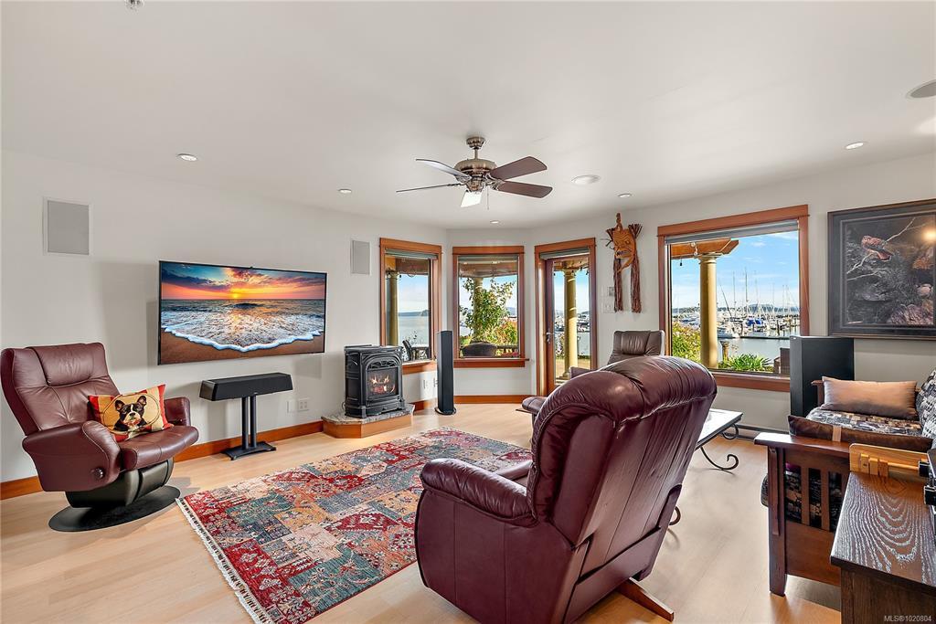 Custom-built, waterfront home offers 2,800+ sq. ft. of luxury, built in 2007 to above-average commercial grade standards Designed for the owner to age in place, an elevator provides easy access for those needing accessibility, a home-based business, or a live-in caregiver. Enjoy breathtaking views of Mt. Baker, the marina, & active marine life from almost every room. The chef’s kitchen has custom cabinetry, a Wolf dual-fuel range, & warm Tuscan-inspired finishes. The spacious layout includes 3 bds, 2.5 ba, & private wine cellar. Expansive 1,300 sq ft brick patio, ideal for entertaining, gardening, or relaxing by the sea. A covered outdoor dining area with gas heaters allows for year-round enjoyment of the stunning waterfront setting. Located steps from Sidney’s shops, restaurants, this exceptional home offers a lifestyle of convenience and beauty. A rare opportunity to own a truly special home built with care, designed for comfort, and positioned for breathtaking coastal views.