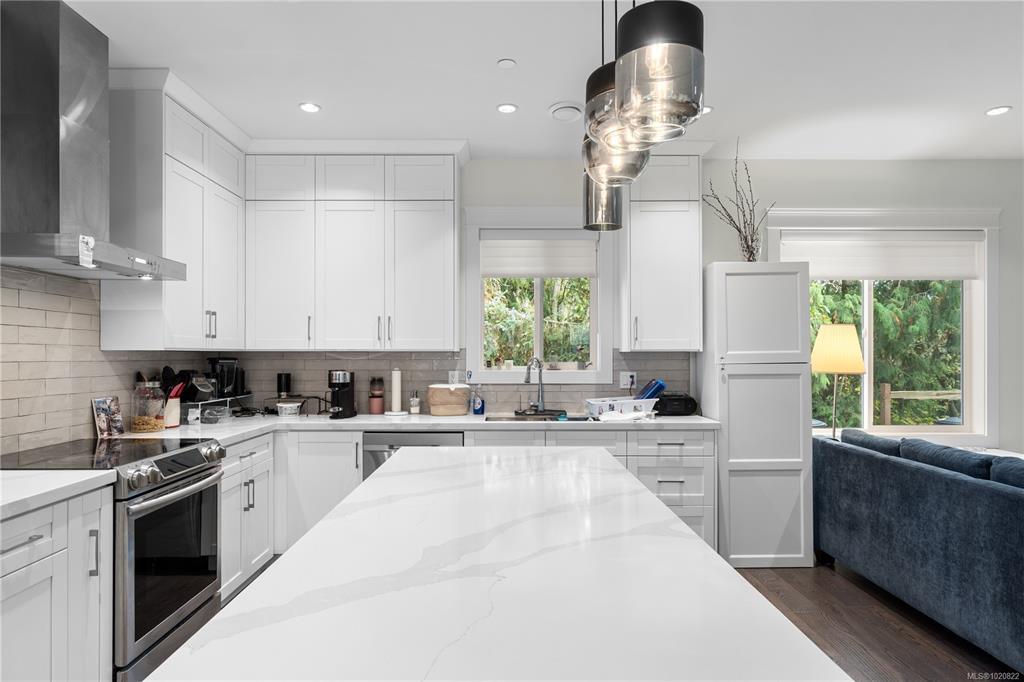 Experience refined coastal living in this near-new North Nanaimo residence offering exceptional privacy, no GST, and the remainder of the builder’s warranty. Backing onto tranquil Walley Creek with no neighbours behind, this home provides a rare sense of space, safety, and serenity—perfect for families. Steps from Frank Ney Elementary, Harry Wipper Park, and minutes to Neck Point, enjoy beach days, sunset walks, and endless outdoor exploration. Inside, a bright open layout welcomes you with a quartz chef’s kitchen, smart automatic blinds, EV charger, and a stunning treetop deck ideal for morning coffee or evening gatherings. Premium finishes, modern comfort, and thoughtful design elevate everyday living. Located in one of Nanaimo’s most desirable neighbourhoods, North-end shops, dining, and recreation are all within easy reach. A luxurious, private, family-friendly lifestyle awaits. Measurements are approximate; verify if important.