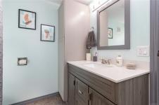 The open-concept design welcomes you with a stylish kitchen featuring newer countertops, appliances, and flooring. A bay window with a dining nook and built-in workspace adds versatility, while a large movable island and walk-in style pantry make cooking and storage effortless. Bedrooms redesigned for comfort with upgraded flooring and organized closets.