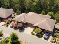 Welcome to The Pointe–a West Coast-inspired enclave of townhomes, privately tucked away amongst 7 tranquil acres along Demamiel Creek. This well appointed single-level home features 2 bed plus den and 2 bath spanning across 1500+ sq.ft. The open concept layout offers a seamless flow between the kitchen, dining and living area with gas fireplace. The kitchen features SS appliances, newer subway-tiled backsplash and quartz counters. Windows throughout the home’s living space frame a picturesque forest oasis while allowing ample natural light to flood the heart of the home. The primary bed features a walk-through closet, leading to the ensuite. Finishing off the interior space is the second bed, den, the main bath and laundry. Bask in the sun from the home's expansive SW balcony, equipped with a gas outlet for BBQs and direct access to the dining area. All this, plus a single-car garage and additional driveway parking make this strata property a truly elevated offering in today's market.