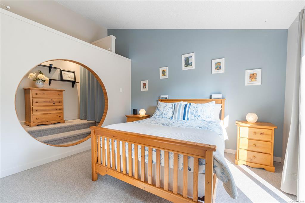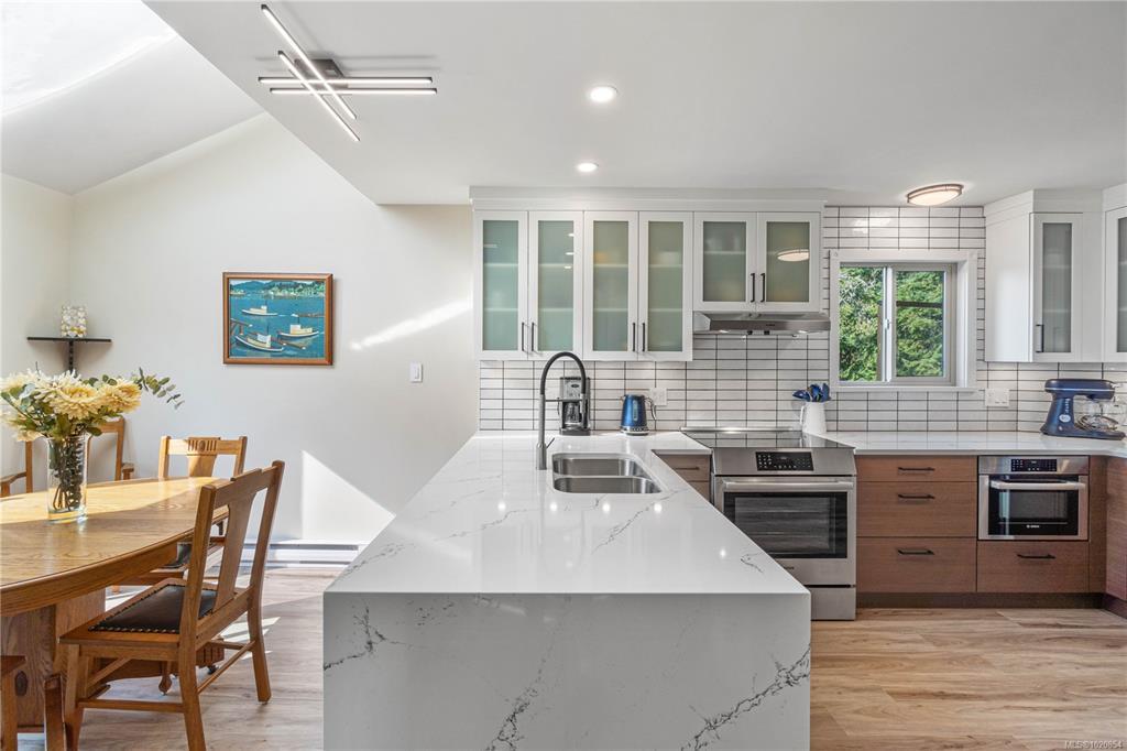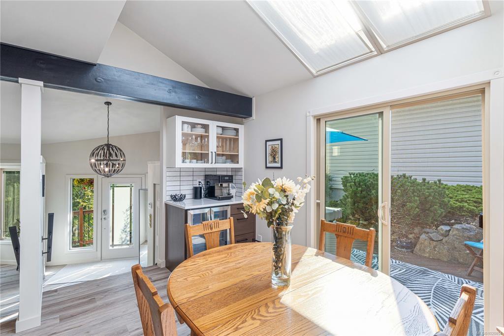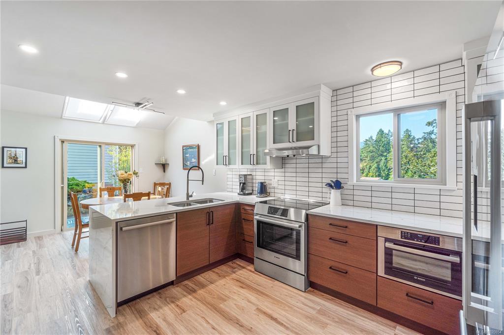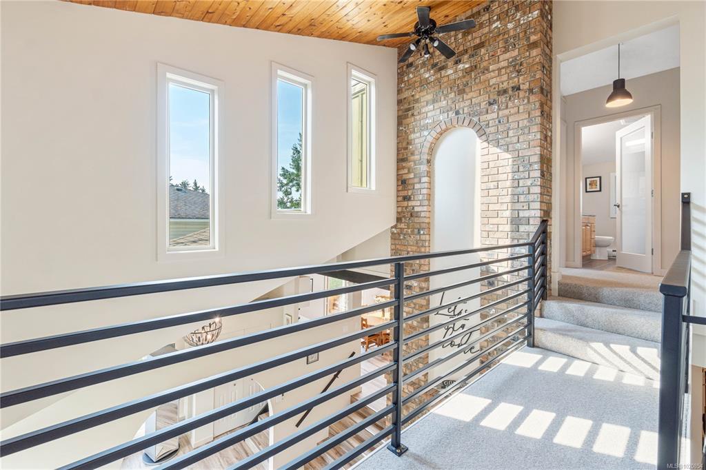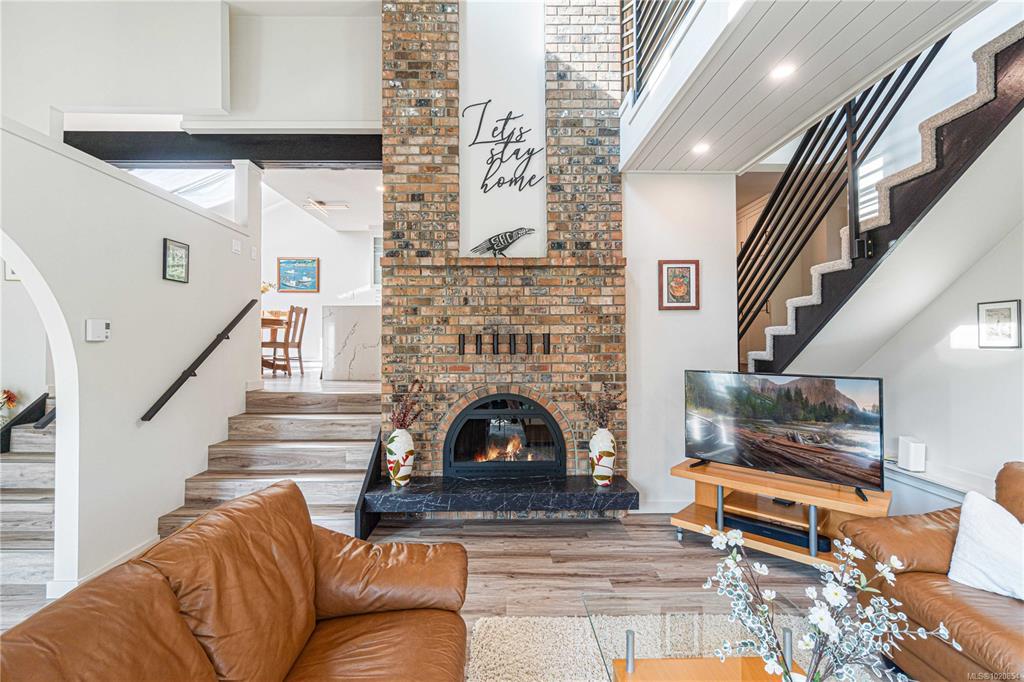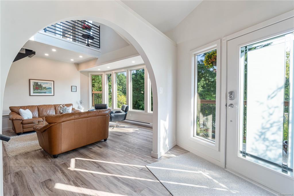 Custom West Coast home with soaring vaulted ceilings, expansive windows & sliding glass doors flood this home with light & showcase forest & mountain views. Enjoy privacy, peaceful mornings & golden sunsets. Located in Nanaimo’s treasured Sherwood Forest with Linley Valley Park trails 1 block away or walk to Departure Bay Beach. Lovingly maintained & renovated by the owners for 35+ yrs. The custom Merritt kitchen is a true showpiece featuring Cambria quartz counters with waterfall edge, Bosch appliances & coffee bar. Beautifully renovated main bathroom with soaker tub. New flooring, paint, updated plumbing, electrical & lighting. Stunning floor to ceiling fireplace. Custom railings lead upstairs to 3 bedrooms with plush wool carpets & 2nd bathroom. Outside, a spacious storage area/crawlspace is above the wired workshop. Multiple decks & balconies for enjoying Island Life. New H/W Tank & 9yr roof. Book your showing to visit this unique sanctuary in the city. Measurements approximate.
