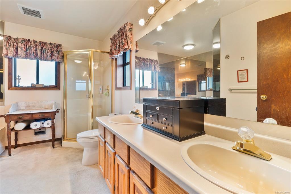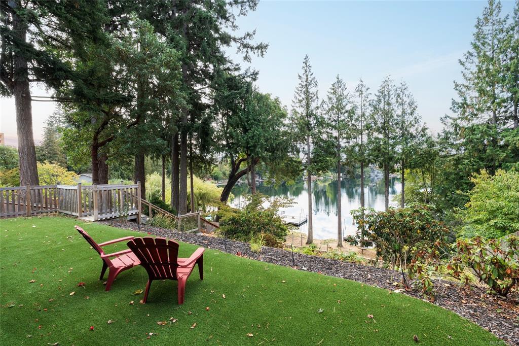 Escape to the lake with this rare opportunity. Nestled on the coveted side of Langford Lake w/ south-facing exposure at the end of a quiet cul-de-sac, this exceptional 5BED,3BATH home(including 2ED suite)offers 3,367 sqft of living space on an 11,630 sqft lot. Enjoy direct water access from the landscaped, 3-tiered backyard—complete w/irrigation, storage cabana for your water toys & private, updated dock where you can swim, paddle, or take in breathtaking sunsets. Inside, the main level features a cozy living room w/wood-burning fireplace, a bright kitchen w SS appliances, ample counter space & cabinetry & eating area that opens to patio w/ seamless glass railings—perfect for morning coffee. Retreat to the spacious upper-level primary suite (427 sqft) w/walk-in closet, sitting area, private balcony & ensuite bathroom. Two additional bedrooms, a flexible rec room complete the home, while the spacious 2BED suite w/shared laundry provides flexibility for extended family or rental income.