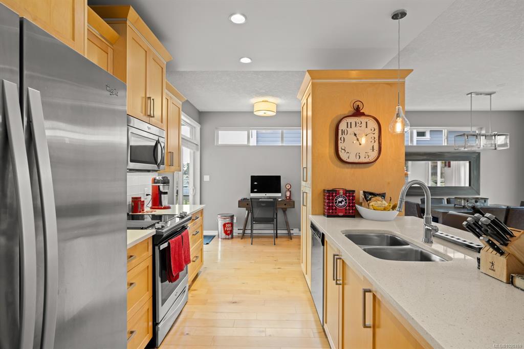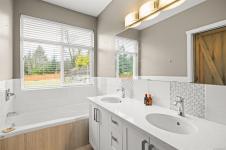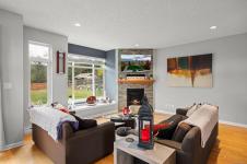 Welcome Home to one of Sunriver Estate's most popular RANCHERS! This 12270 sq.ft. South facing lot boasts a 1,534 sq.ft. home with 3 bedrooms and 2 bathrooms. You'll be impressed with the very large Primary bdrm facing your backyard and an incredible ensuite with double sinks and a bathtub as well as walk-in shower! This bright and cheery, open concept home is finished with wood and ceramic tile flooring, a beautiful gas fireplace, quartz kitchen and bathroom counter tops, modern kitchen cabinets with metal inlay in crown molding, tall double sided kitchen pantry, back-splashes in the kitchen and bathrooms, a window seat in the great room, a huge walk in laundry room and a wrap around veranda perfect for relaxing outdoors. The property backs onto ALR land and features a fully irrigated yard—offering privacy, comfort, and exceptional livability. You will also enjoy views of the Olympic Mountains, lots of walking trails, a great neighbourhood and community. A rare opportunity awaits!