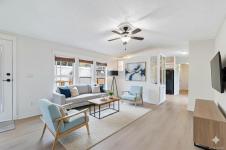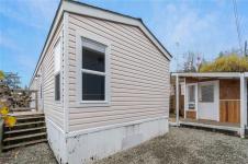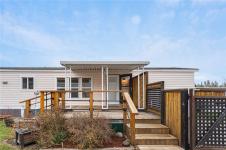 Just a short drive from town brings you to this welcoming mobile home park where children and pets are allowed. Step into this freshly updated 2 bedroom, 2 bathroom home featuring brand new flooring, vaulted ceilings, and upgraded kitchen cabinet doors. The layout offers spacious rooms throughout, including a primary bedroom with a 4 piece ensuite, plus a second bedroom and a full 4 piece main bathroom. The front bedroom has been newly painted, making it bright and inviting. Enjoy the covered deck for outdoor relaxation and appreciate the convenience of a large storage shed. An electric furnace keeps things comfortable year-round. Move in and enjoy with confidence. Monthly fee of $385.