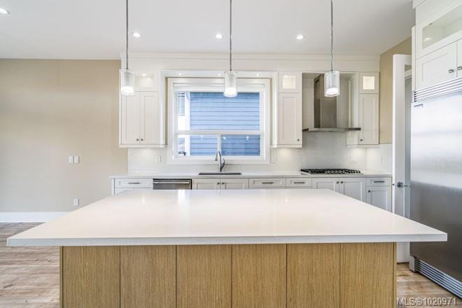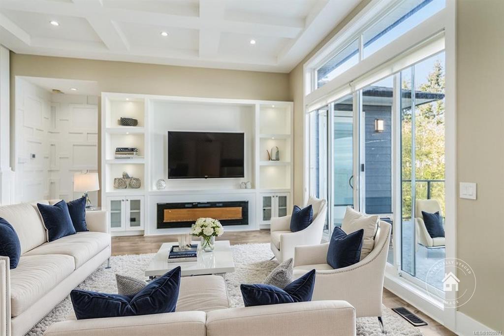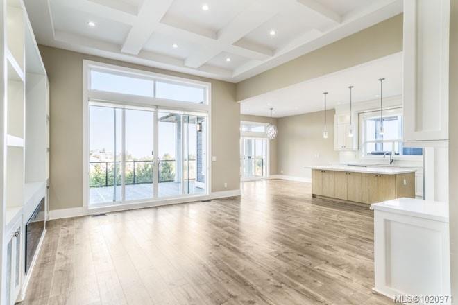 Enjoy sweeping ocean and mountain views from this new custom home in North Nanaimo. Offering 6 bedrooms and 5 bth over 3 levels, this residence showcases quality construction, high-end finishes, and multiple oceanview decks. The main floor features a spacious foyer, bright great room with high ceilings, fireplace, and 10' sliding doors opening to a large, unobstructed oceanview deck. The open-concept layout flows into the dining area and gourmet kitchen w/ custom cabinetry, granite counters, center island with bar seating, plus a full second spice kitchen. The primary bdrm has deck access, a luxurious ensuite w/ soaker tub, 4' shower, double sinks, and a generous walk-in closet. A den/office, mudroom, guest bath, garage access, intercom, and security system complete this level. The middle level includes a high-ceiling family room, 3 bedrooms, 2 bathrooms, and expansive deck access. The lower level offers a large 2-bedroom suite. All measurements are approximate, to verify if important.