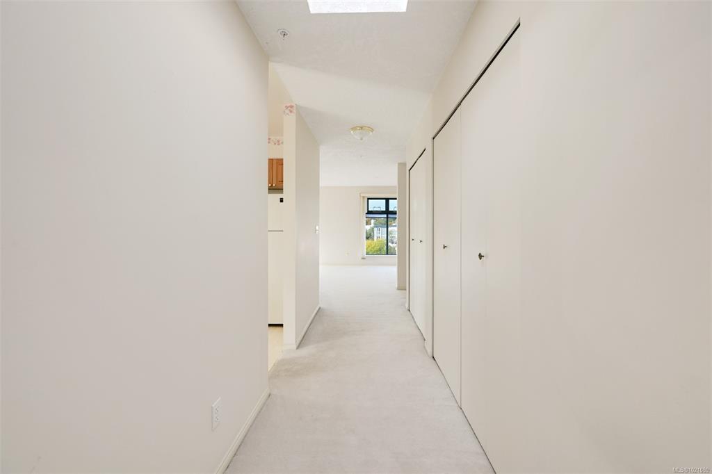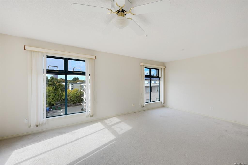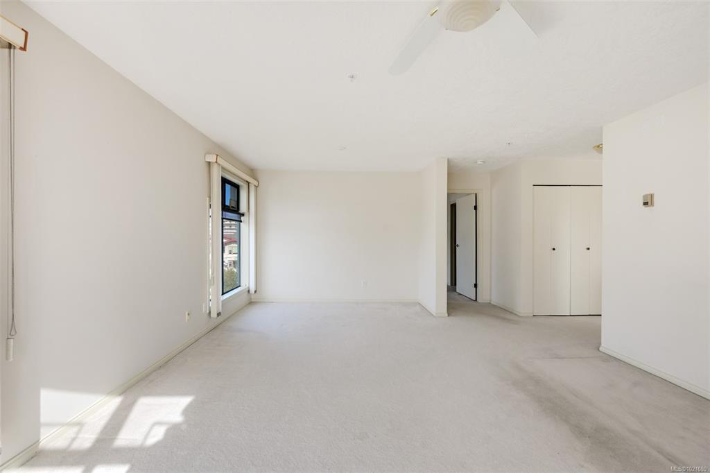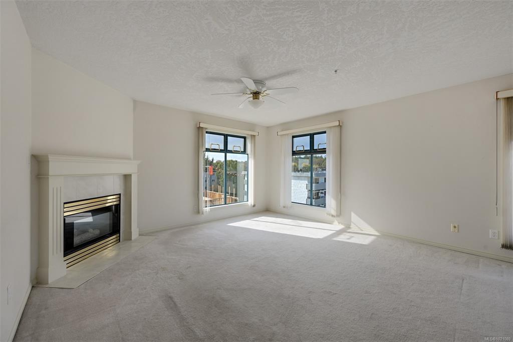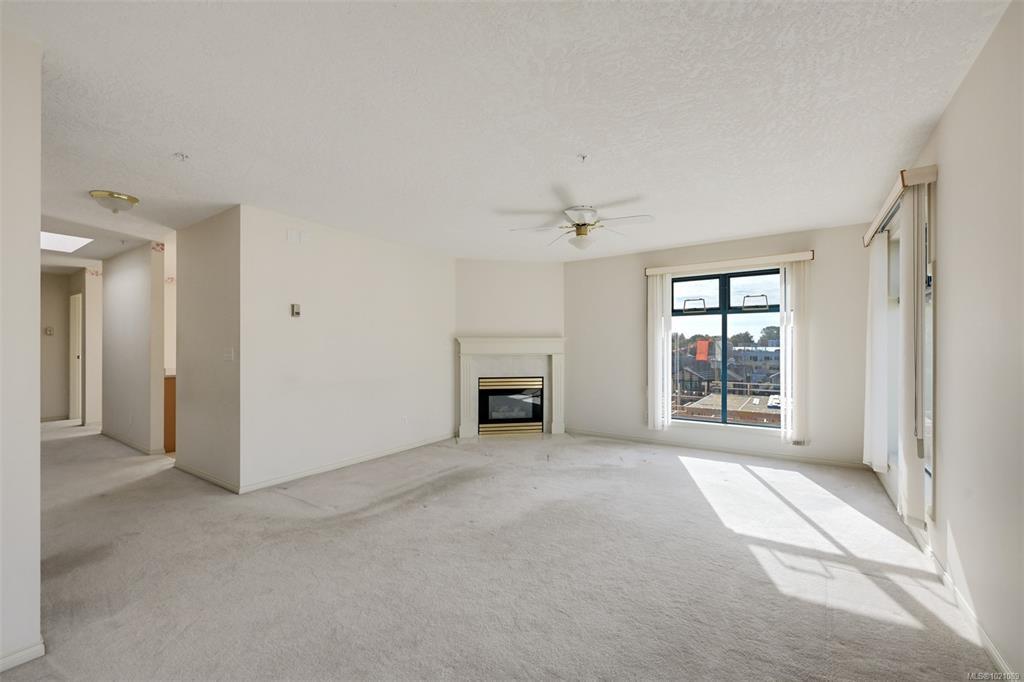 This beautiful Top Floor Corner Unit condo, right in the heart of Cook Street Village, is a unique opportunity to purchase within steps to every amenity, in one of the most vibrant, walkable areas of the city. This is a wonderful option for the mature Buyer who is looking to downsize or invest in a solid rental (one occupant must be 55+). This 2 bedroom, two full bathroom unit has been well cared for and pride of ownership is evident as soon as you enter the home. In the large living room, enjoy cozy evenings with your gas fireplace, room for entertaining, and a dining area fit for a large dining table. The kitchen has lots of cabinets and natural light and access to a deck. The spacious primary bedroom features an ensuite bathroom and 2 closets. Storage is plentiful with closets in the home, along with a separate storage locker. Enjoy the convenience of in-suite laundry & in-floor radiant heating (incl in strata fees). There is also Secure parking & pets welcome! All data approximate.