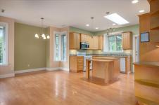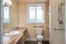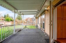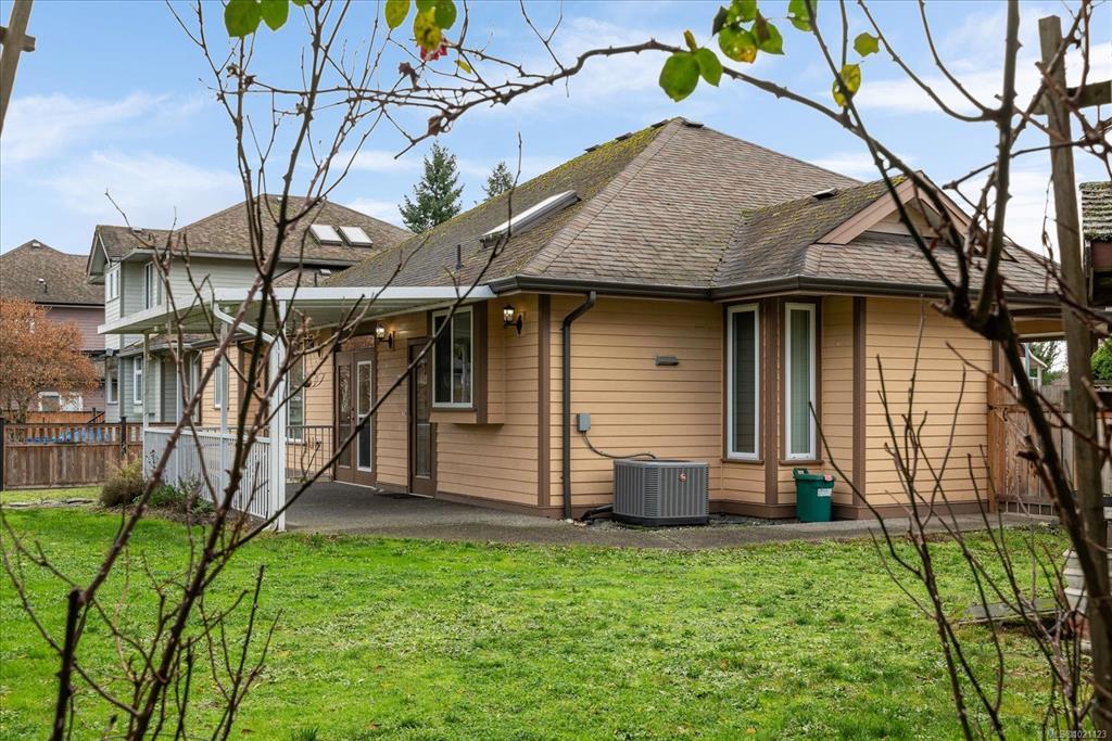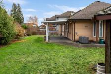 Beautifully designed custom rancher offering easy, level living with 3 bedrooms and 2 bathrooms. The open plan, wide hallways, and zero stairs make this home fully wheelchair accessible. The kitchen features custom cabinetry, an island with seating, and access to a covered 23'×10' patio. The spacious primary suite fits a king bed and offers a walk-through closet to a 3-piece ensuite with walk-in shower. A second bedroom has French doors to the covered veranda, while the third sits near the main bath. A heat pump provides efficient year-round comfort. The living room has a gas fireplace and plenty of natural light, and the dining area accommodates a full table and hutch. The fully fenced yard includes a custom shed, gazebo, and a wrap-around covered veranda. Located on a level cul-de-sac of newer, well-crafted homes, this property is close to Holland Creek Trail and an easy walk to town’s cafés and shops.
